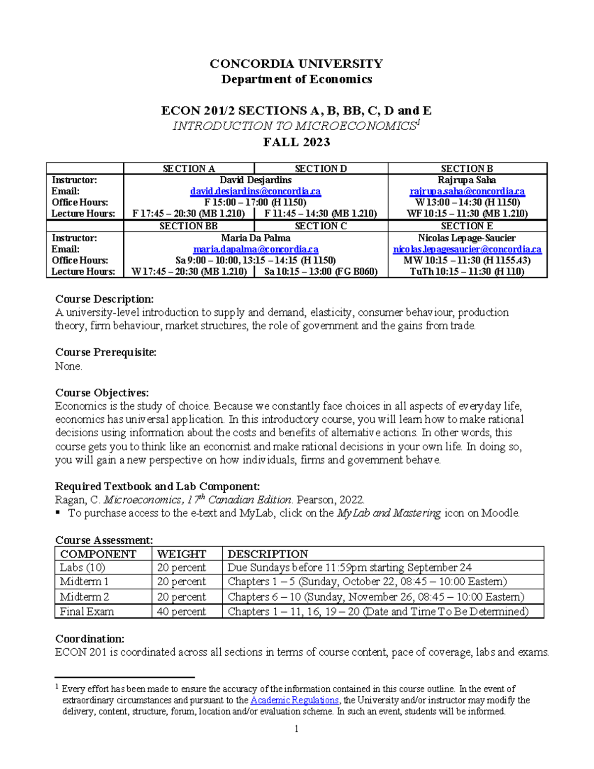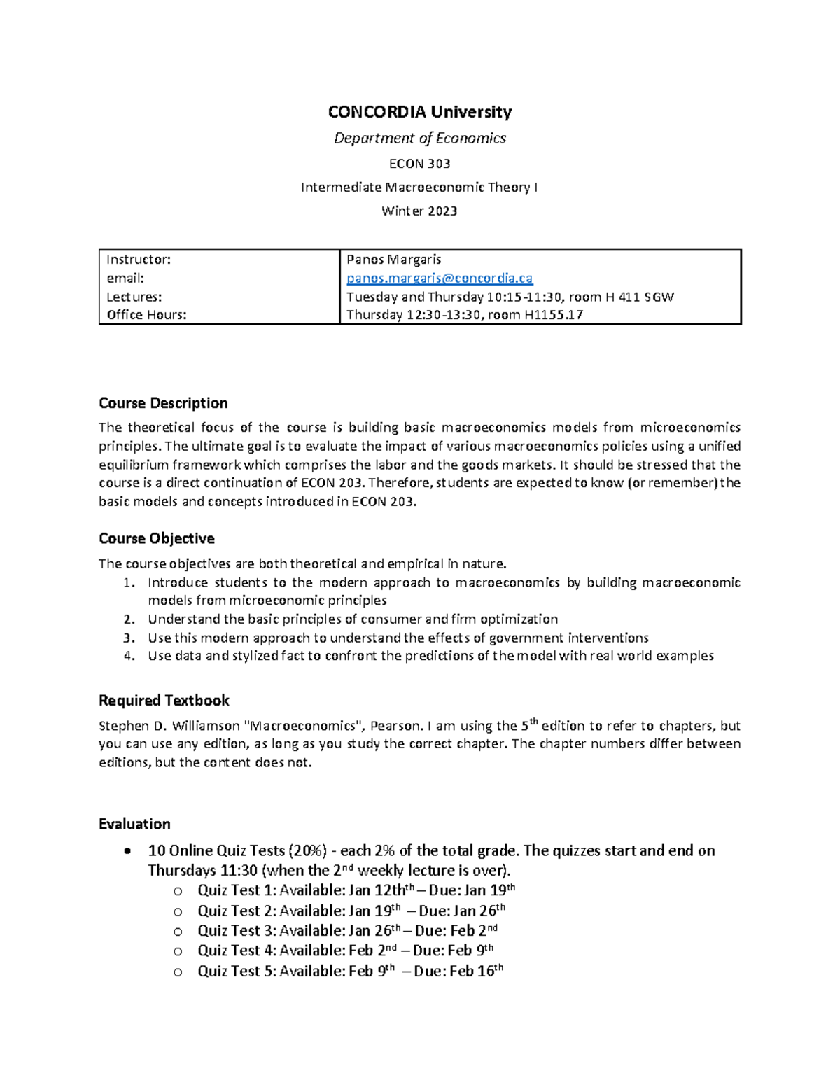 ECON303 Course Outline 2023 CONCORDIA University Department of