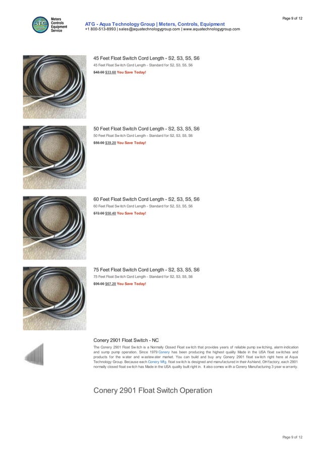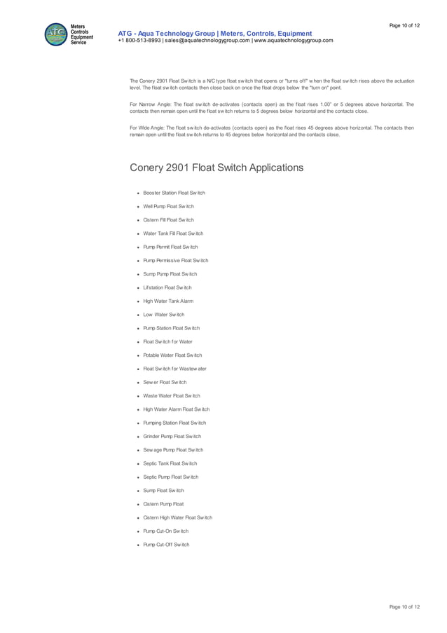 ATG Aqua Technology Group Conery Float Switch Catalog PDF