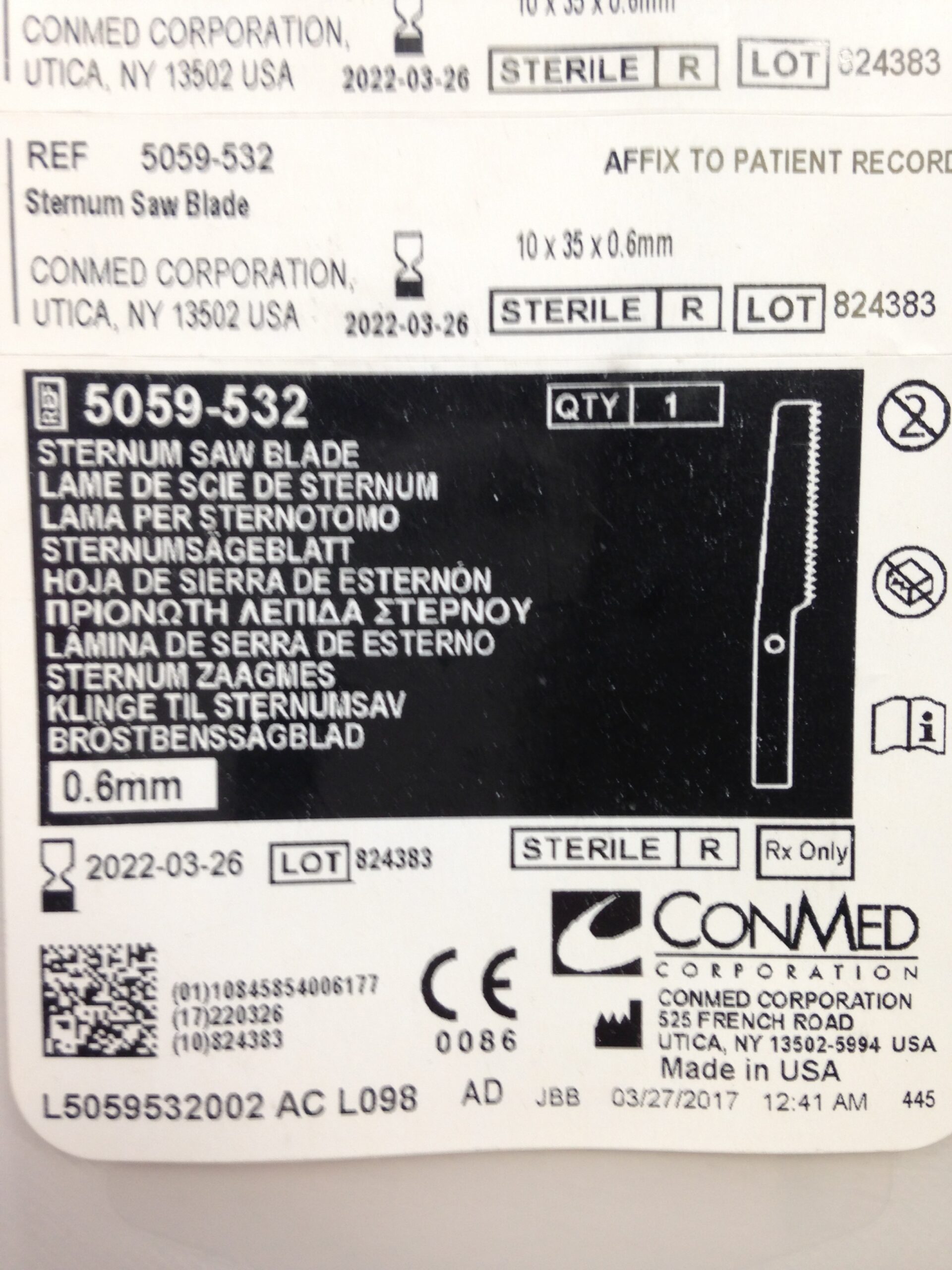New CONMED 5059532 Sternum Saw Blade, 10 x 35 x 0.6mm (5/Box) (X