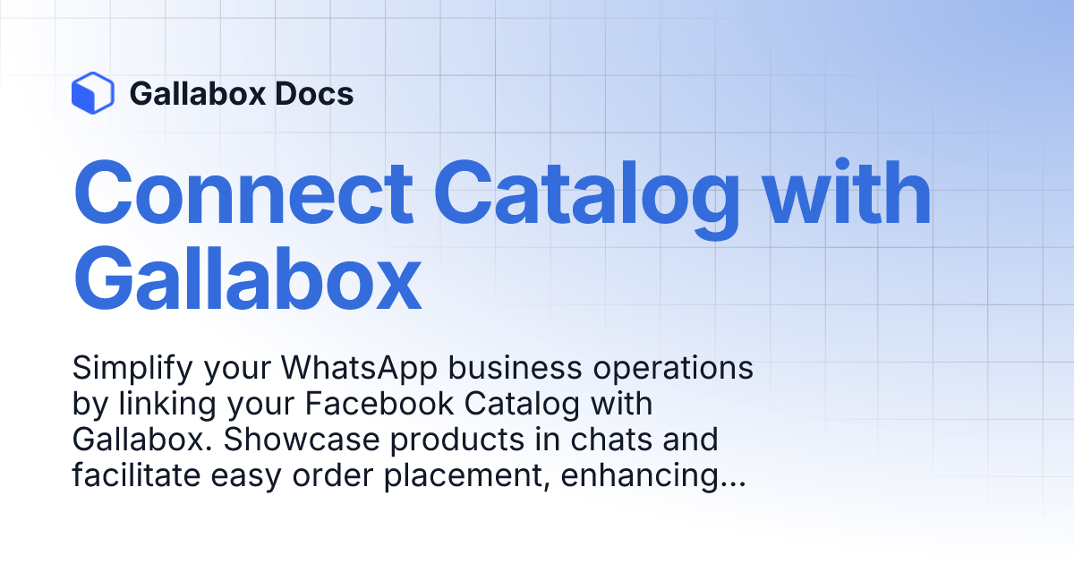 Connect Catalog with Gallabox Gallabox Docs