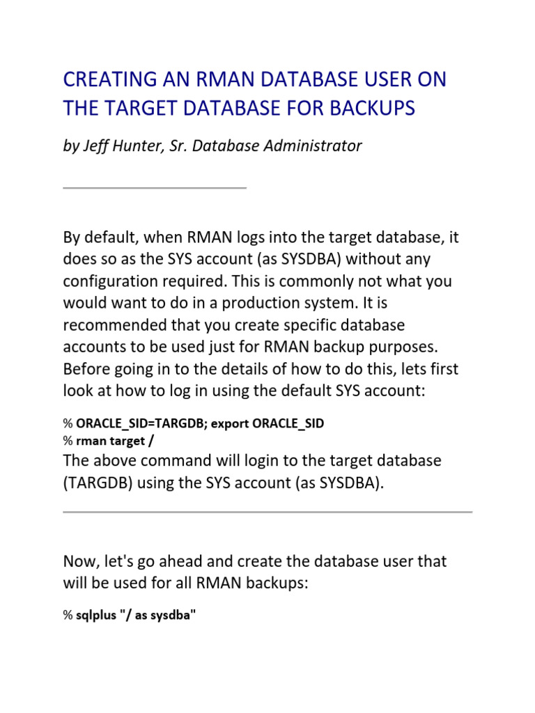 Creating An Rman Database User On The Target Database For Backups PDF