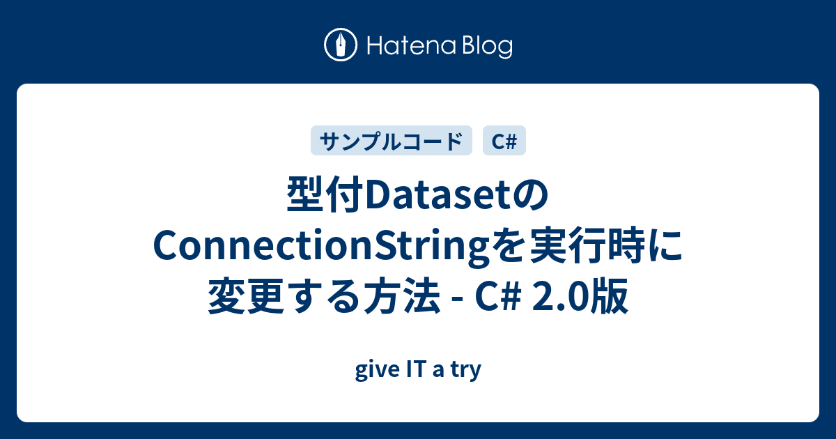 型付DatasetのConnectionStringを実行時に変更する方法 C 2.0版 give IT a try