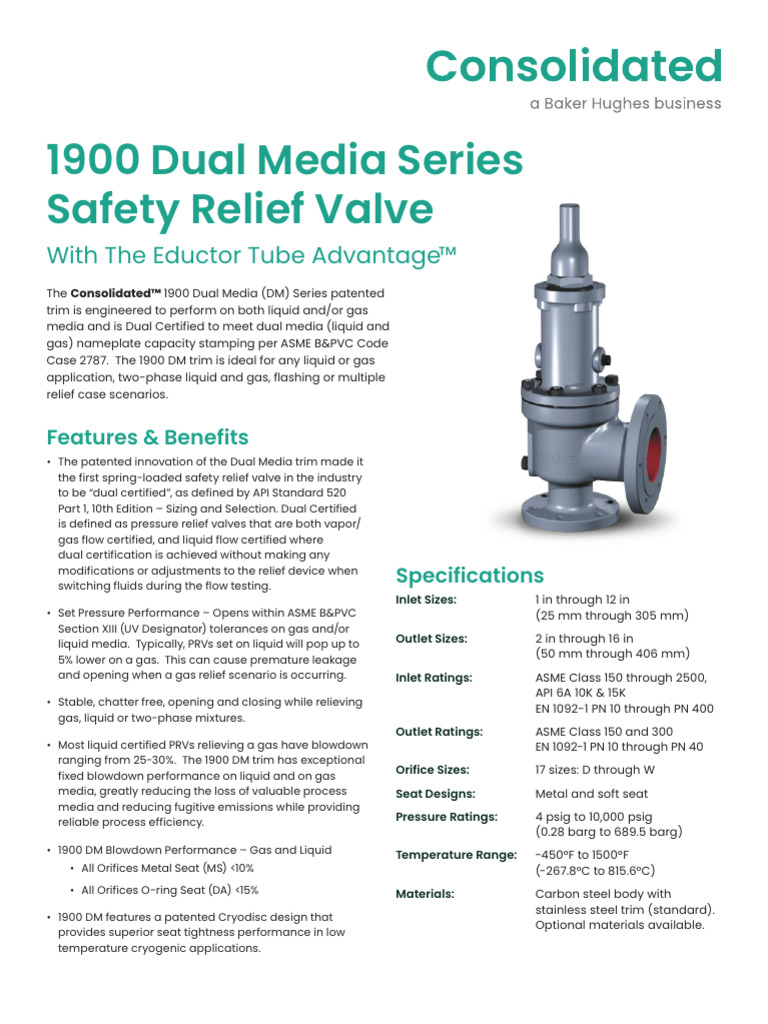 Consolidated 1900 SRV Fact Sheet English PDF Valve Mechanical