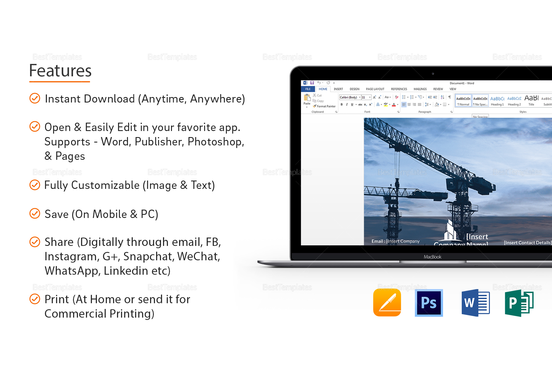Construction Company Catalog Template in PSD, Word, Publisher, Apple Pages
