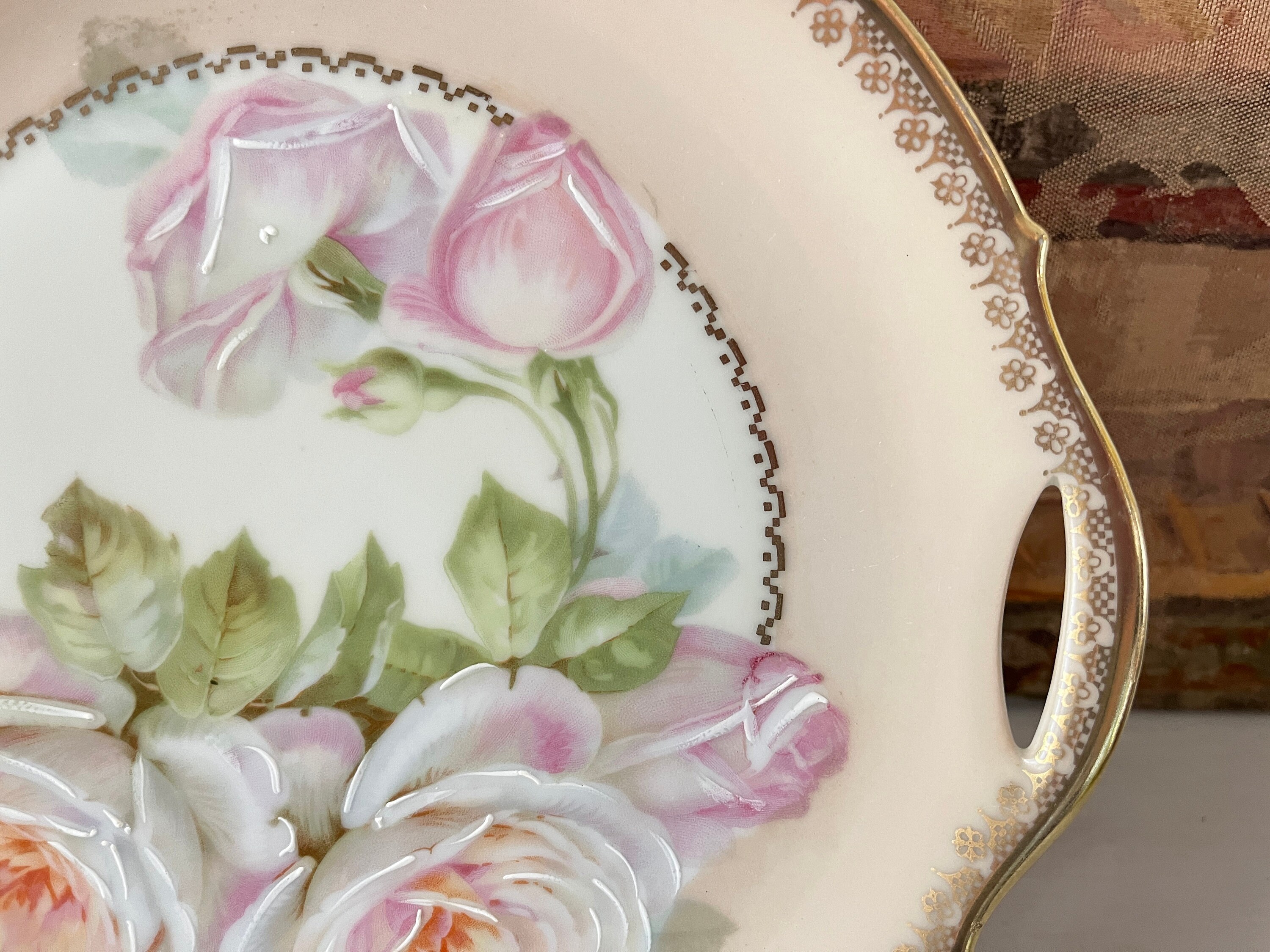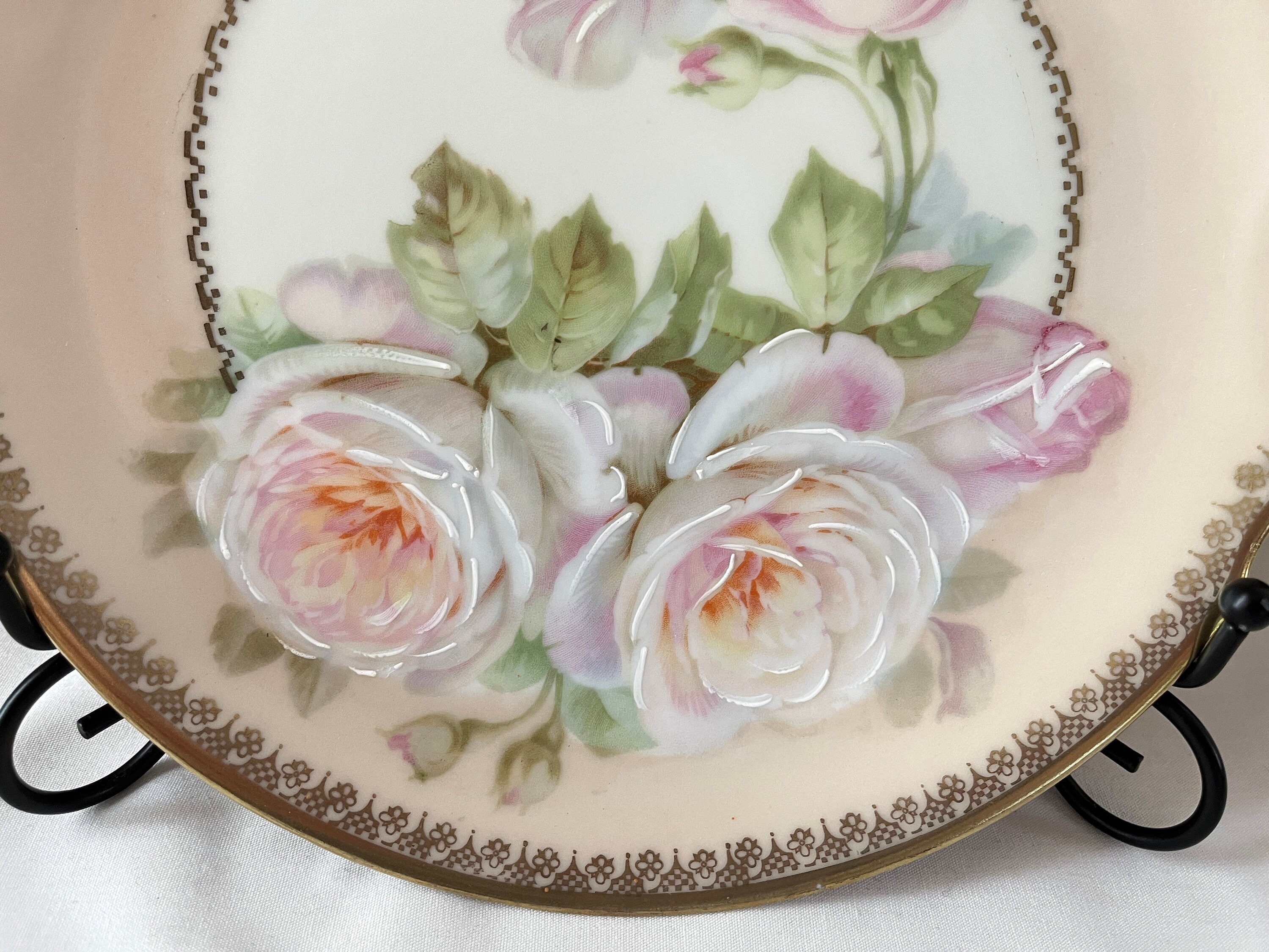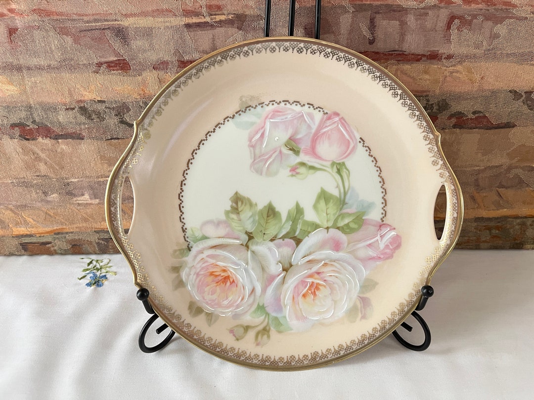 Hand Painted Porcelain Cake Plate Charger Pink Roses Etsy