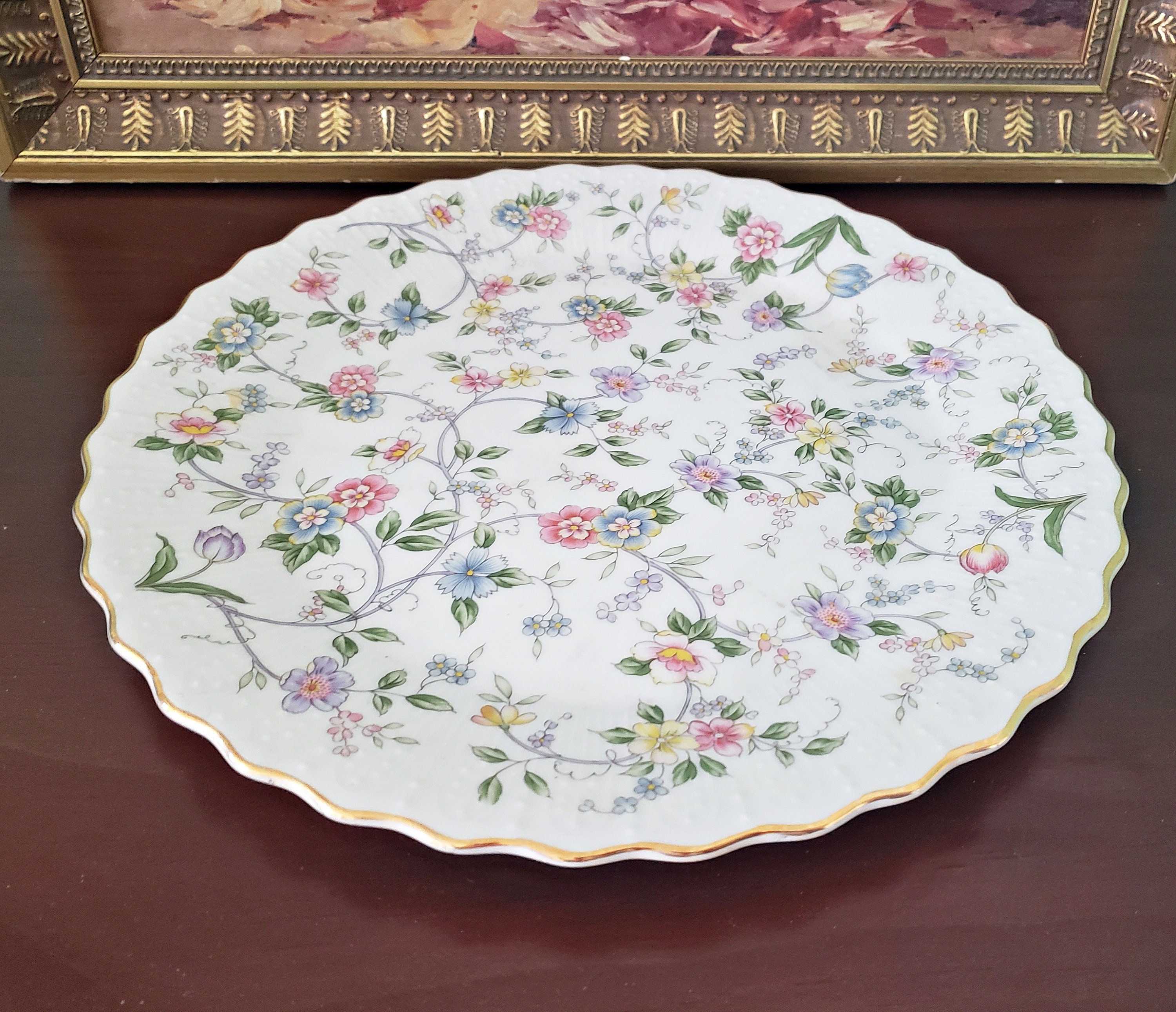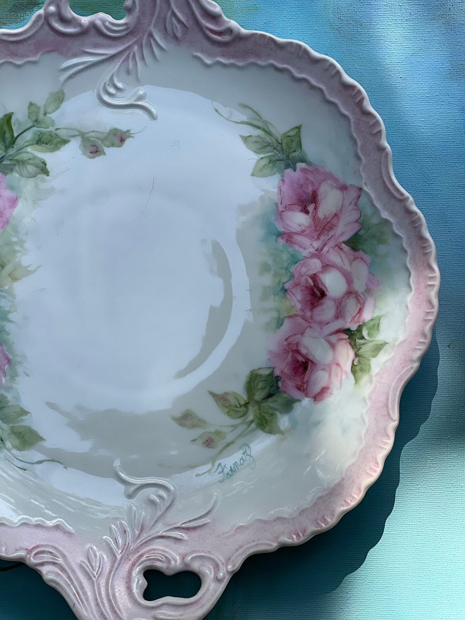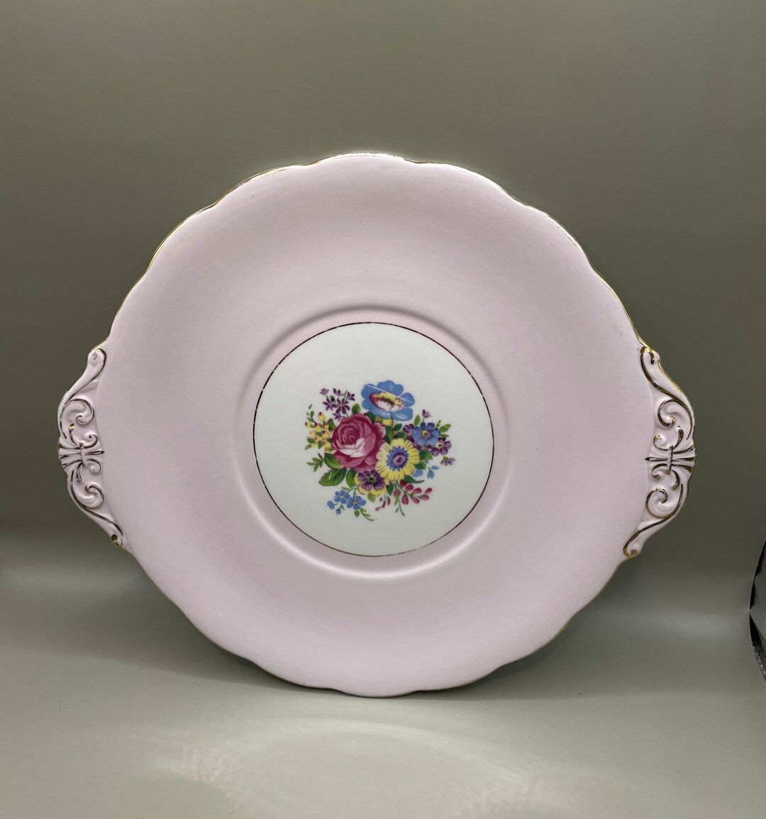 Hand Painted Porcelain Cake Plate Charger Pink Roses Etsy