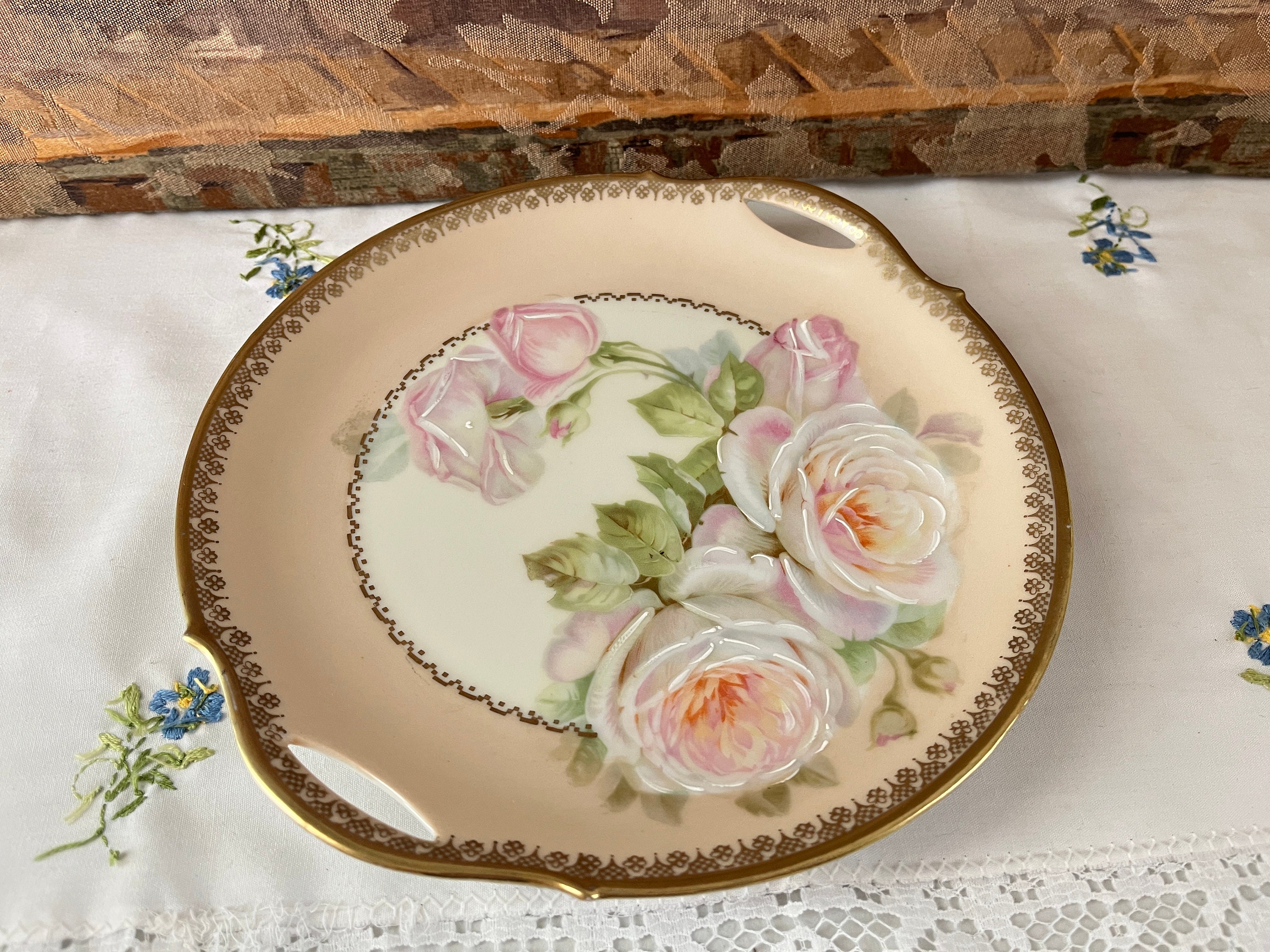 Vintage Limoges Porcelain Cake Plate With Roses Etsy