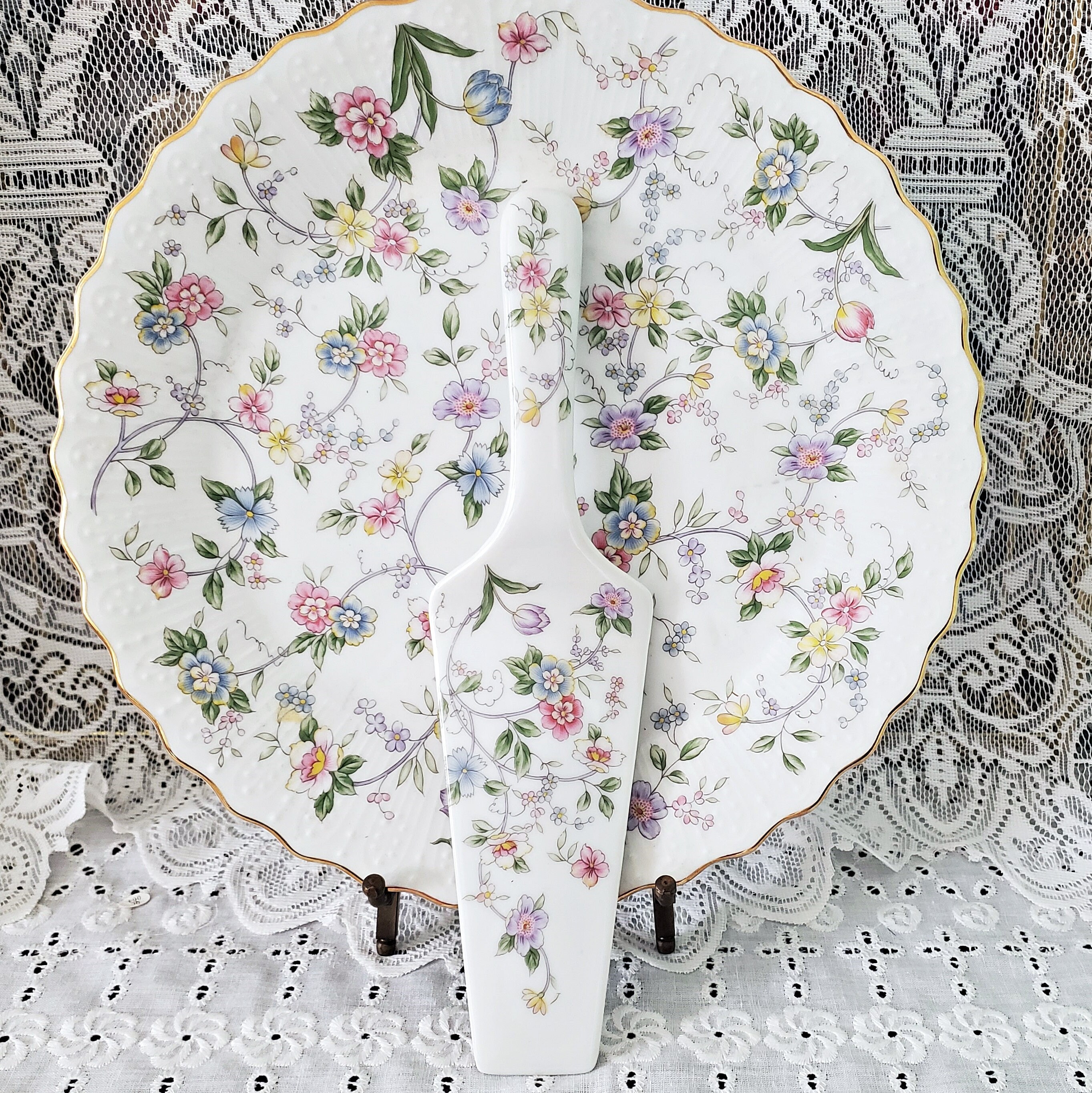 Andrea by Sadek Porcelain Cake Plate With Server in Corona Floral