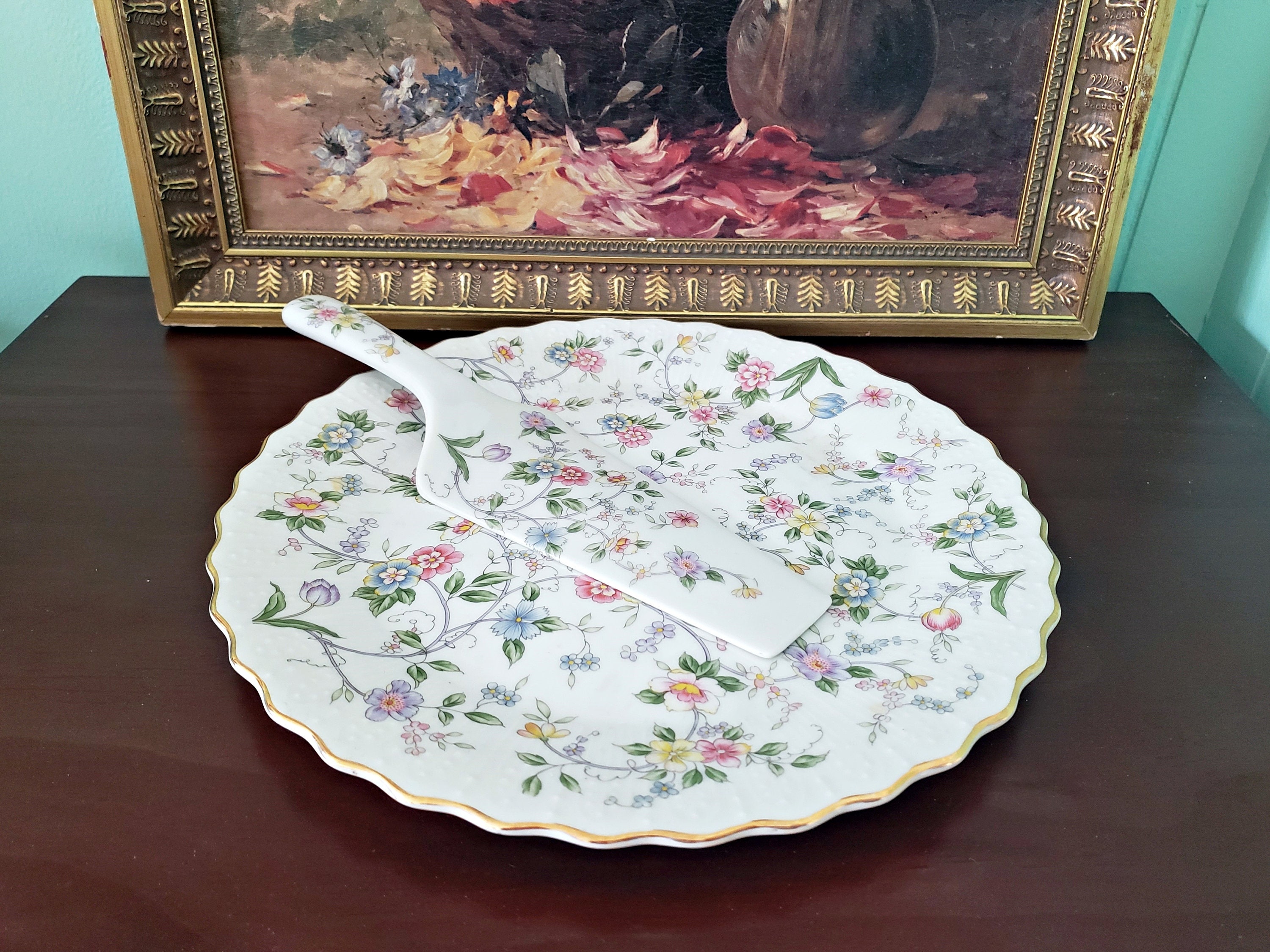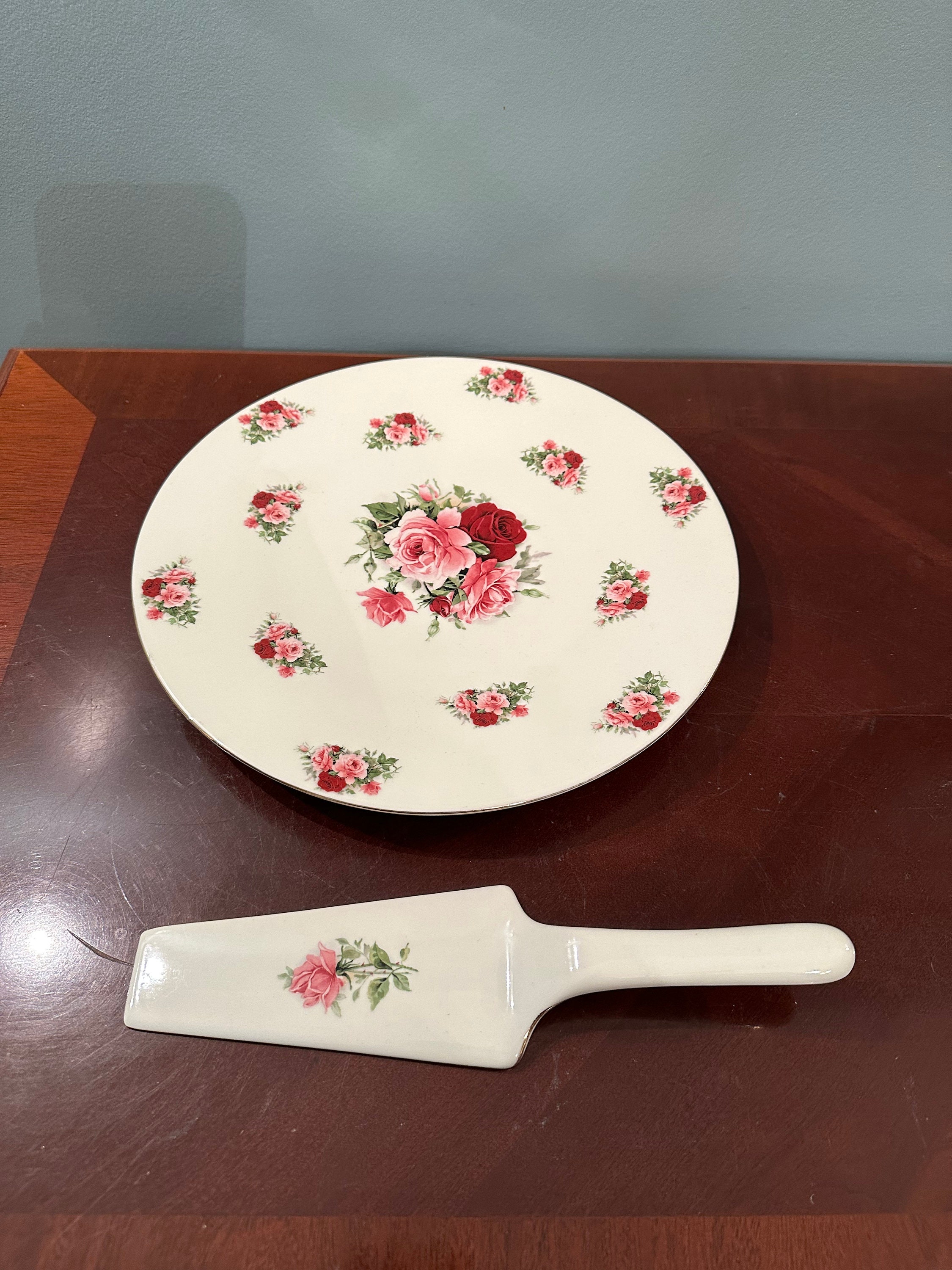 Dining Vintage Porcelain Cake Plate With Matching Server Poshmark