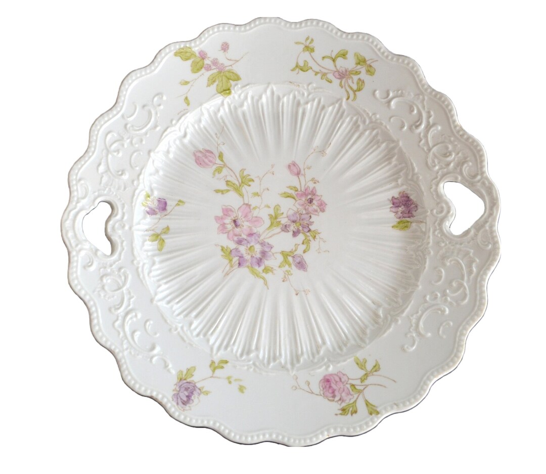 Antique German Porcelain Cake Plate Purple Flower Decoration Etsy