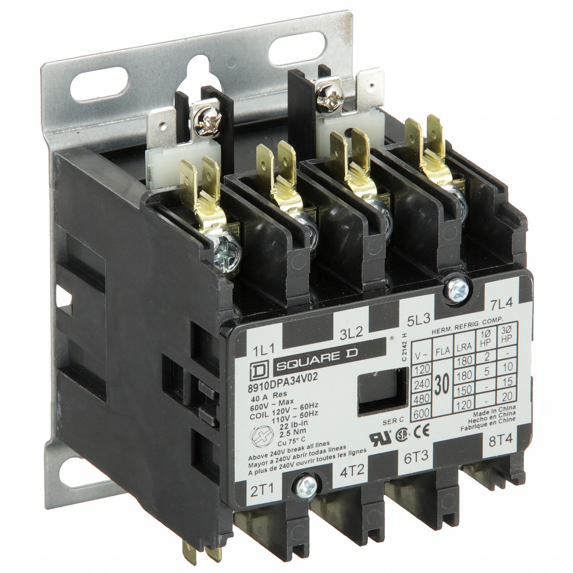SQUARE D, 4 Poles, 120V AC, Definite Purpose Contactor 5KAK5