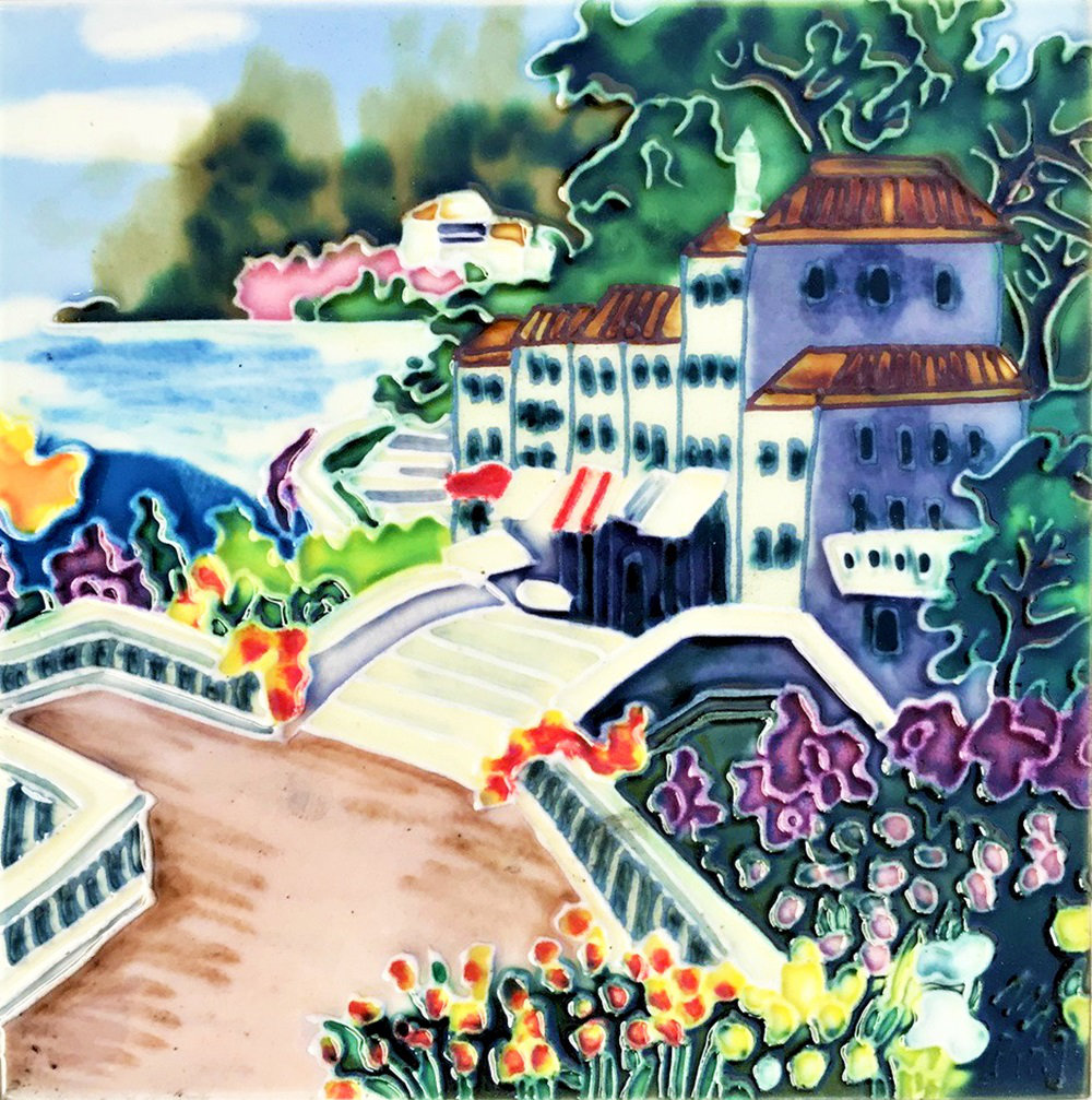 Continental Art Center 8x8" Front View of European Villa Ceramic Art