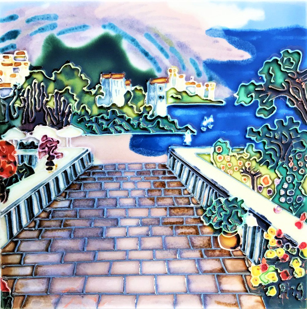 Continental Art Center 8x8" Mediterrain Bridge Walkway Ceramic Art Tile