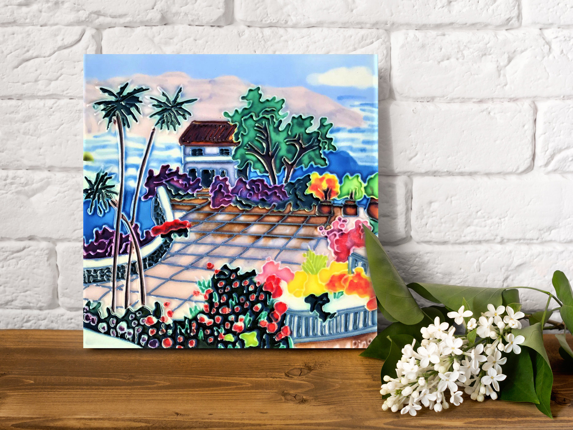 Continental Art Center 8x8" European Villa and Garden Bridge Ceramic
