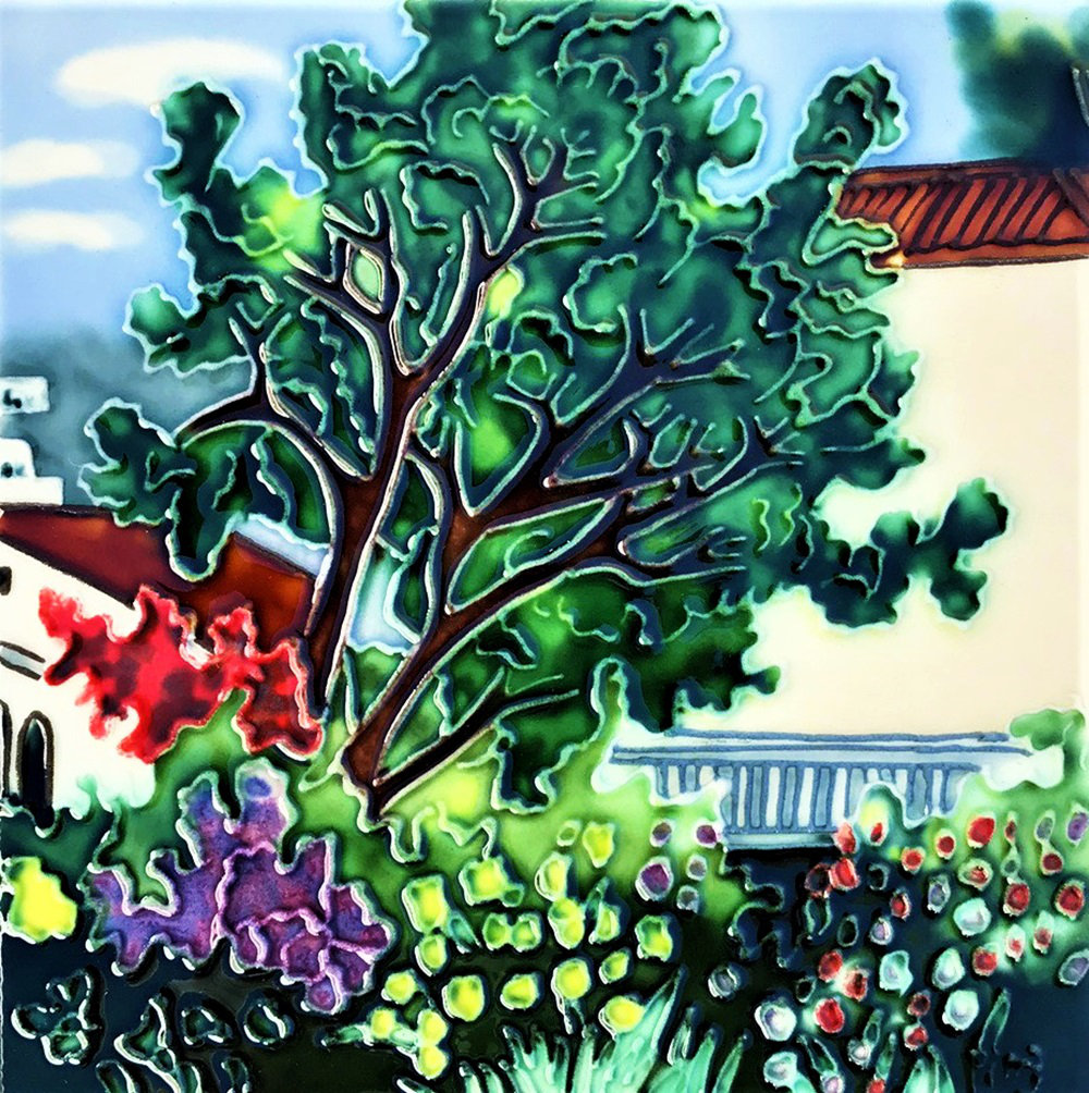 Continental Art Center 8x8" Large Tree in Garden Ceramic Art Tile Hot