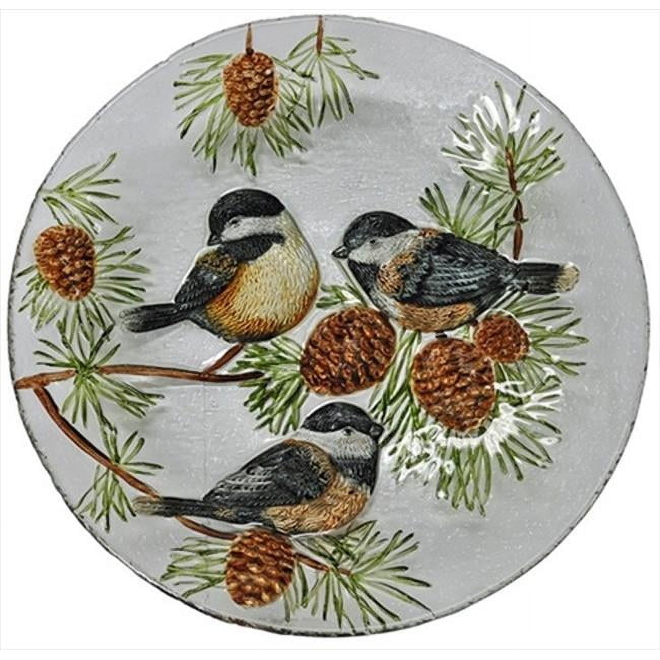 Continental Art Center 18 in. Three Cardinals & Pine Cones Glass Plate