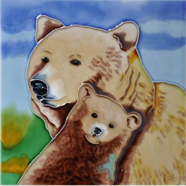 Continental Art Center BD2051 8 x 8 in. Bear Mom & Baby Ceramic Art