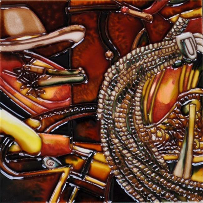 Continental Art Center BD2142 8 x 8 in. Cowboys Gun & Rope Ceramic Art