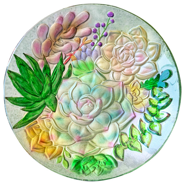 18" Holographic Succulent Glass Plate Bird Bath Bowl Decorative Yard