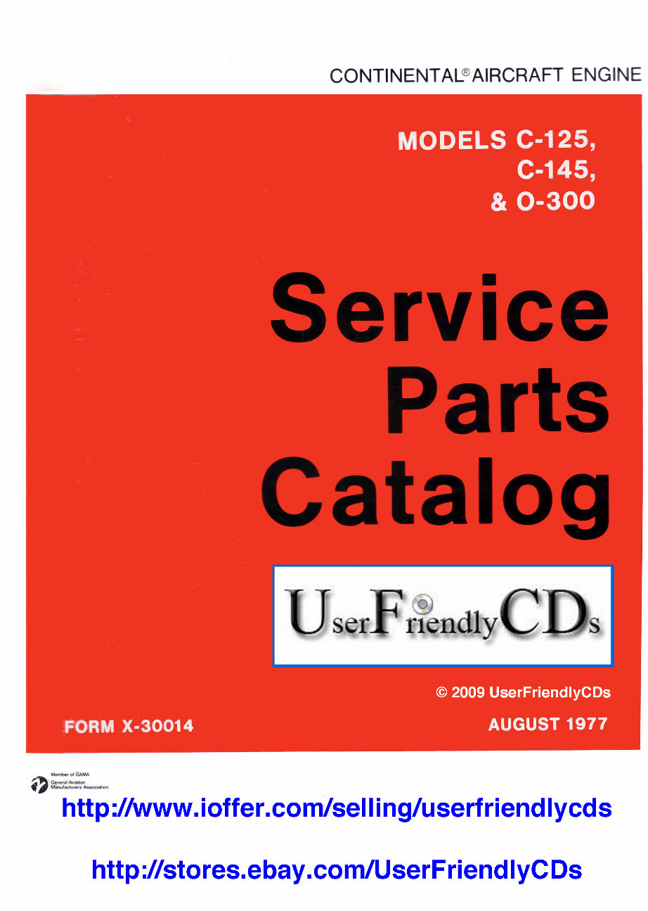 Continental C125, C145, 0300 Engines Illustrated Parts Manual Catalog