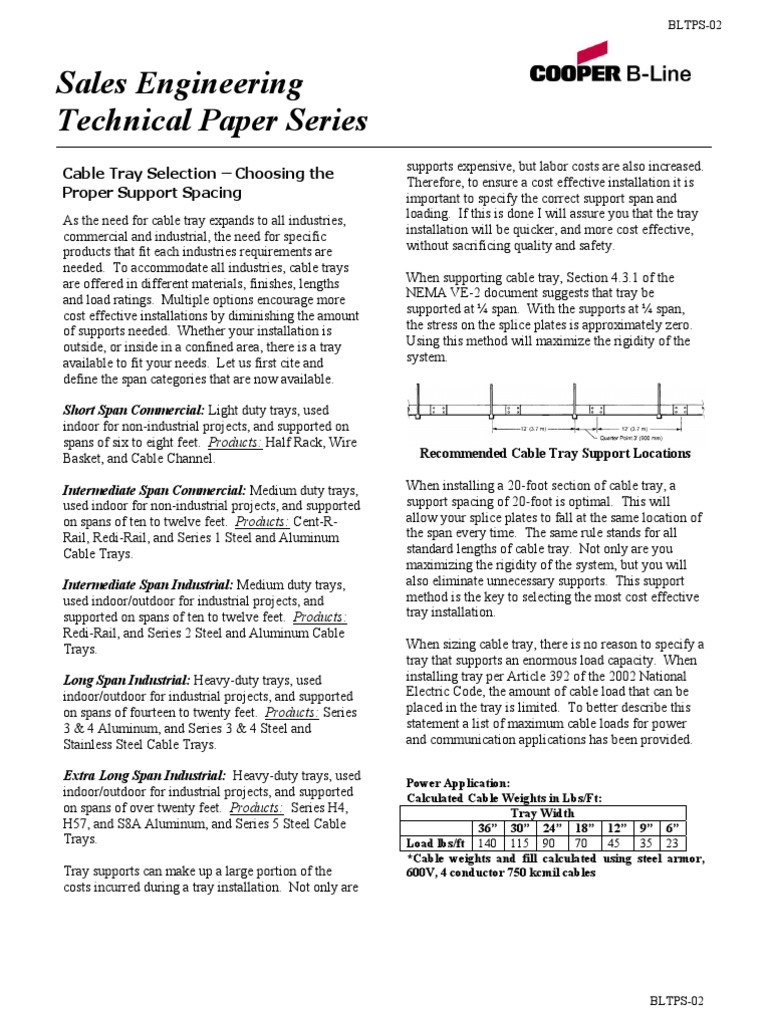 Instructions Cable Tray Sizing Program Cooper BLine PDF
