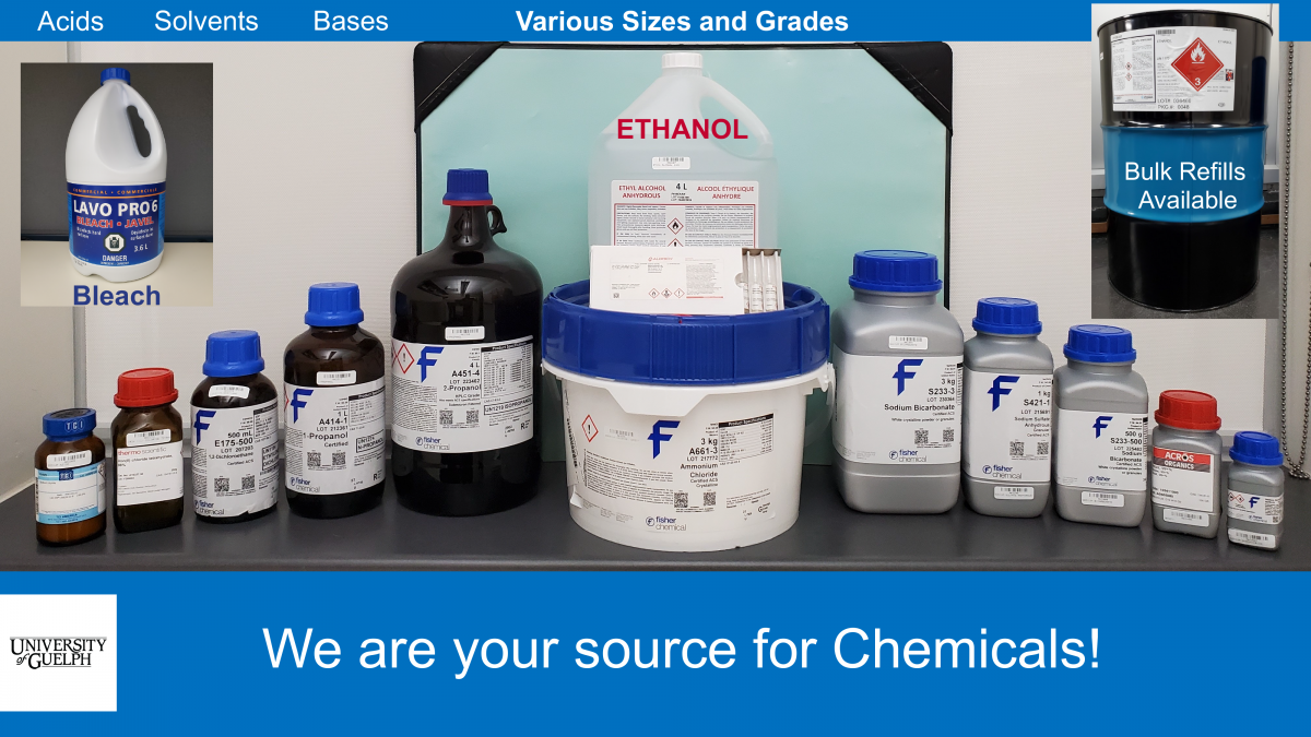 Chemistry classroom, shelves of assorted chemicals and equipment Stock