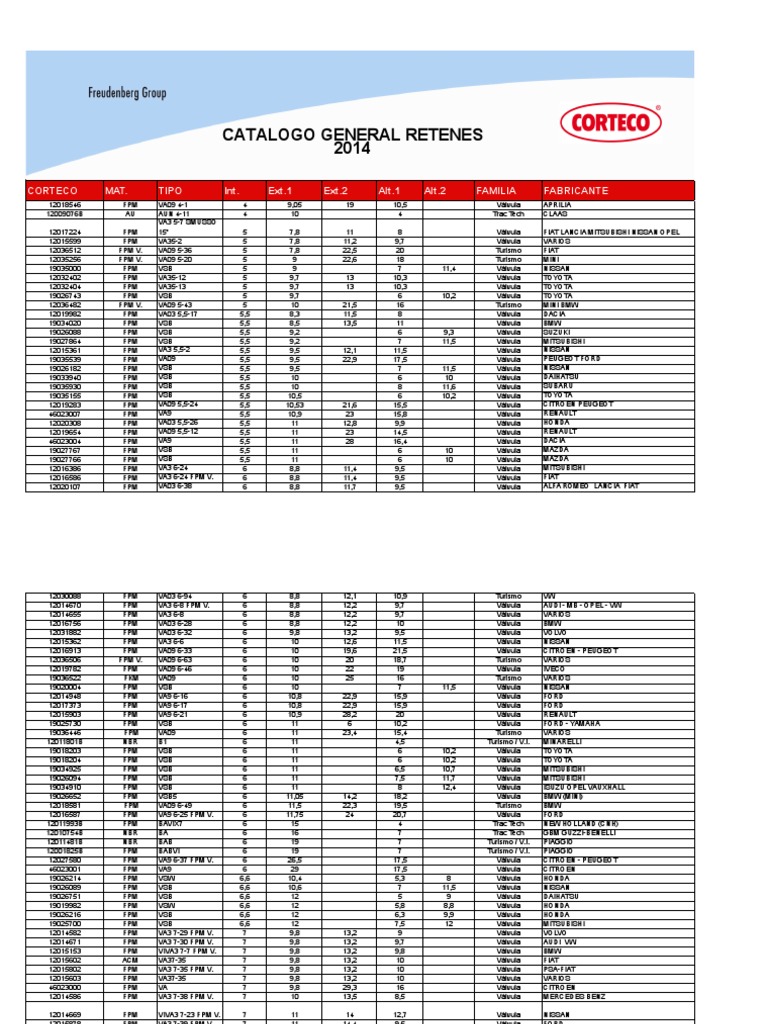 Catalogo General Corteco 2014 Automóvil Industria de vehículos