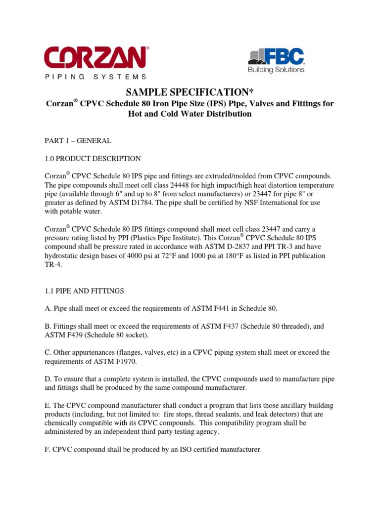 Corzan CPVC Potable Specification 080709 PDF Polyvinyl Chloride