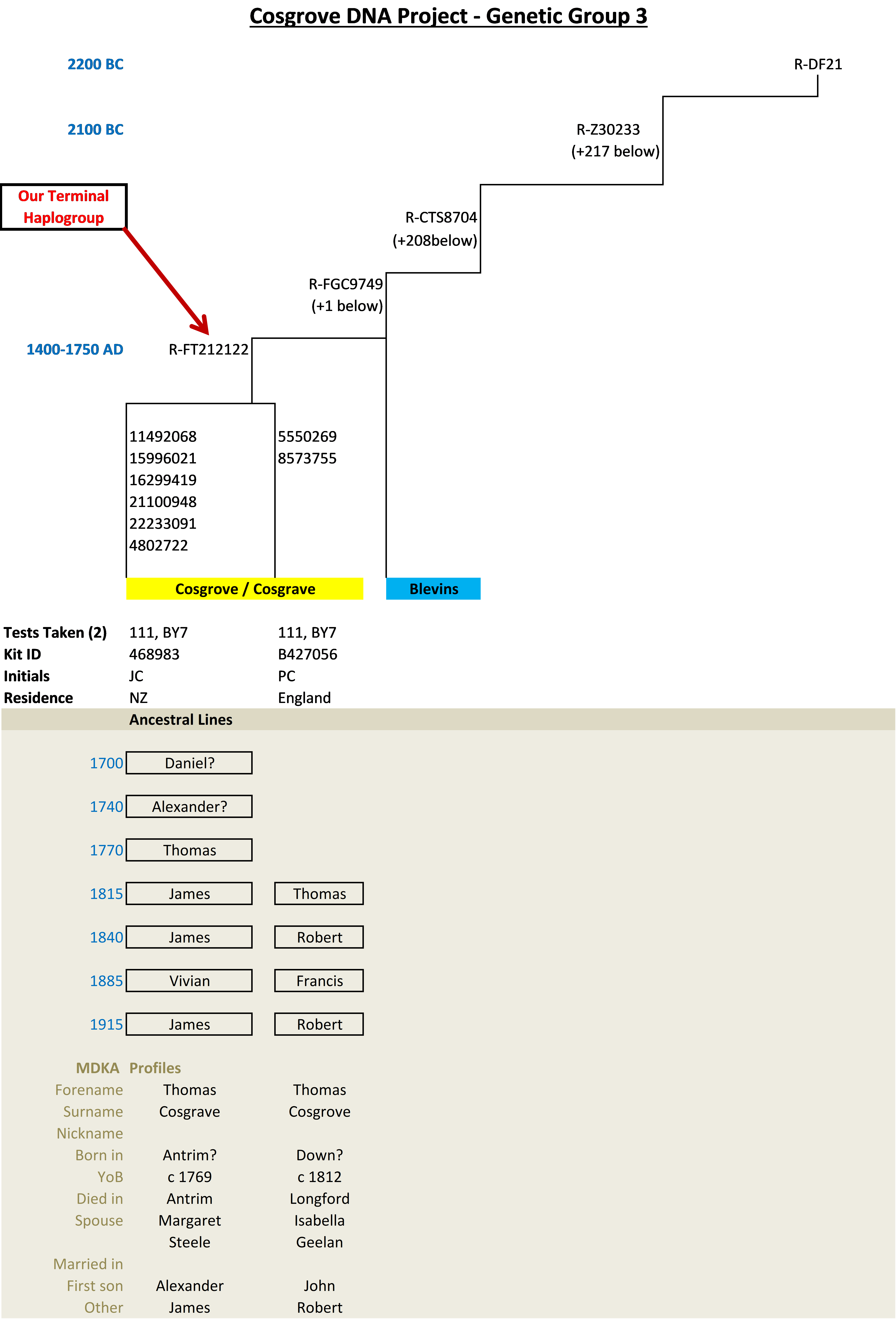 Cosgrave YDNA Progress Trees and Genes