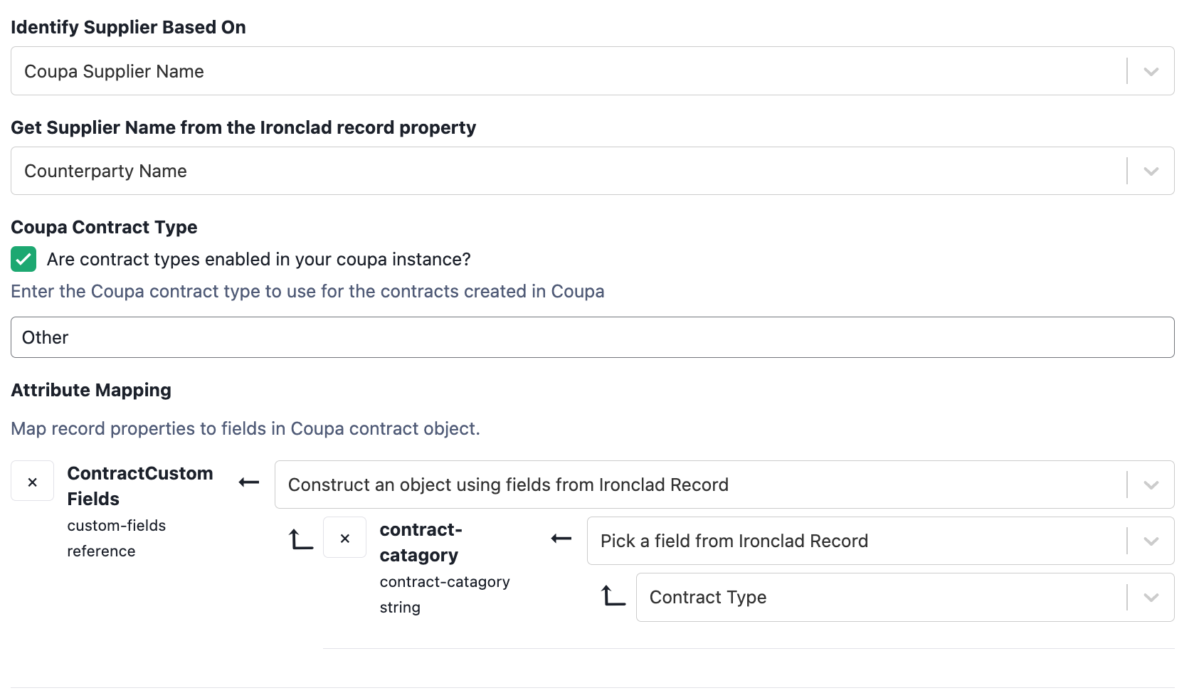 Set Up Mappings for Coupa Integration Ironclad