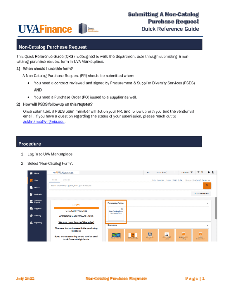 Fillable Online Submitting A NonCatalog Purchase Request Quick