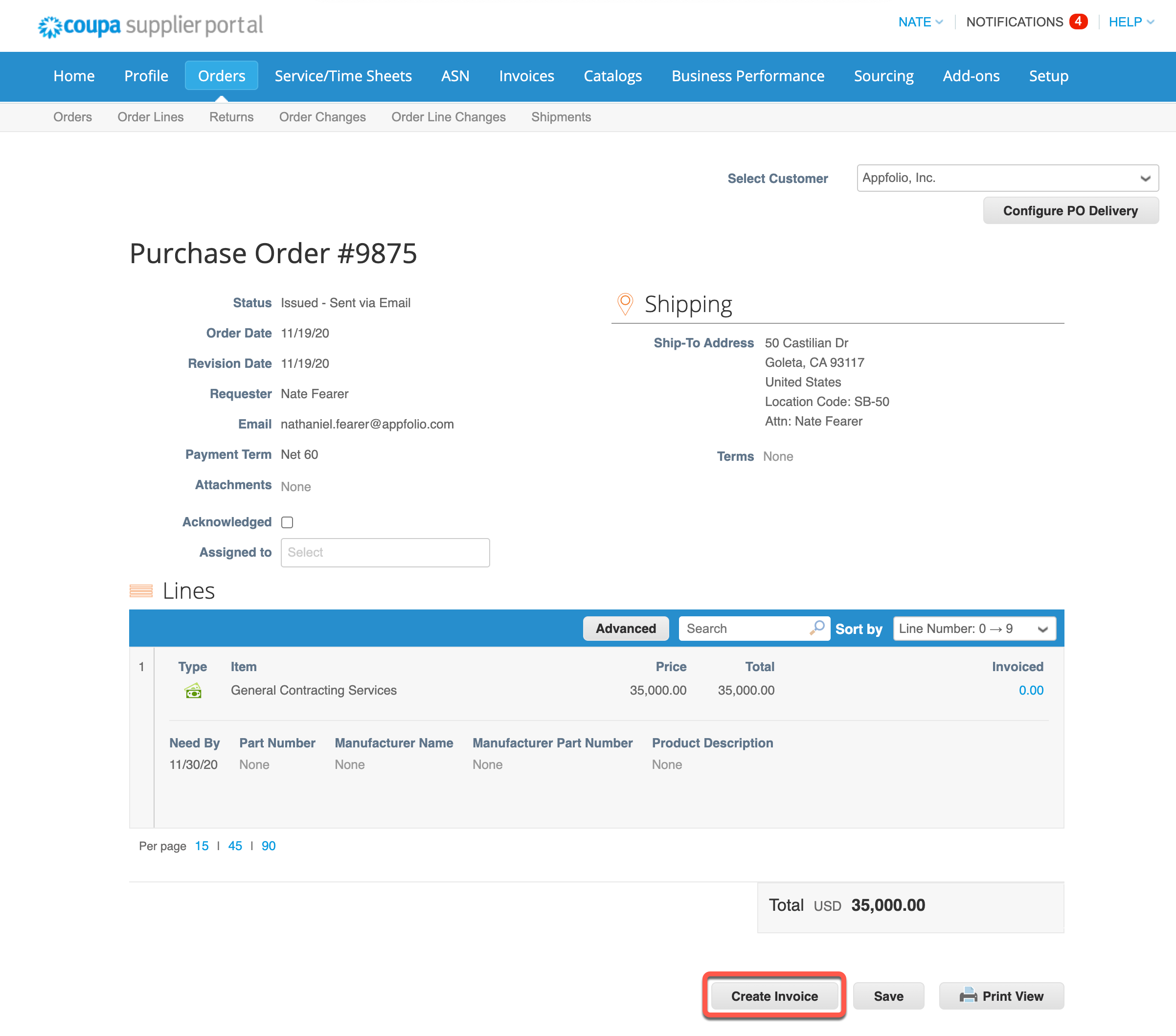 Create or Edit an Invoice Coupa