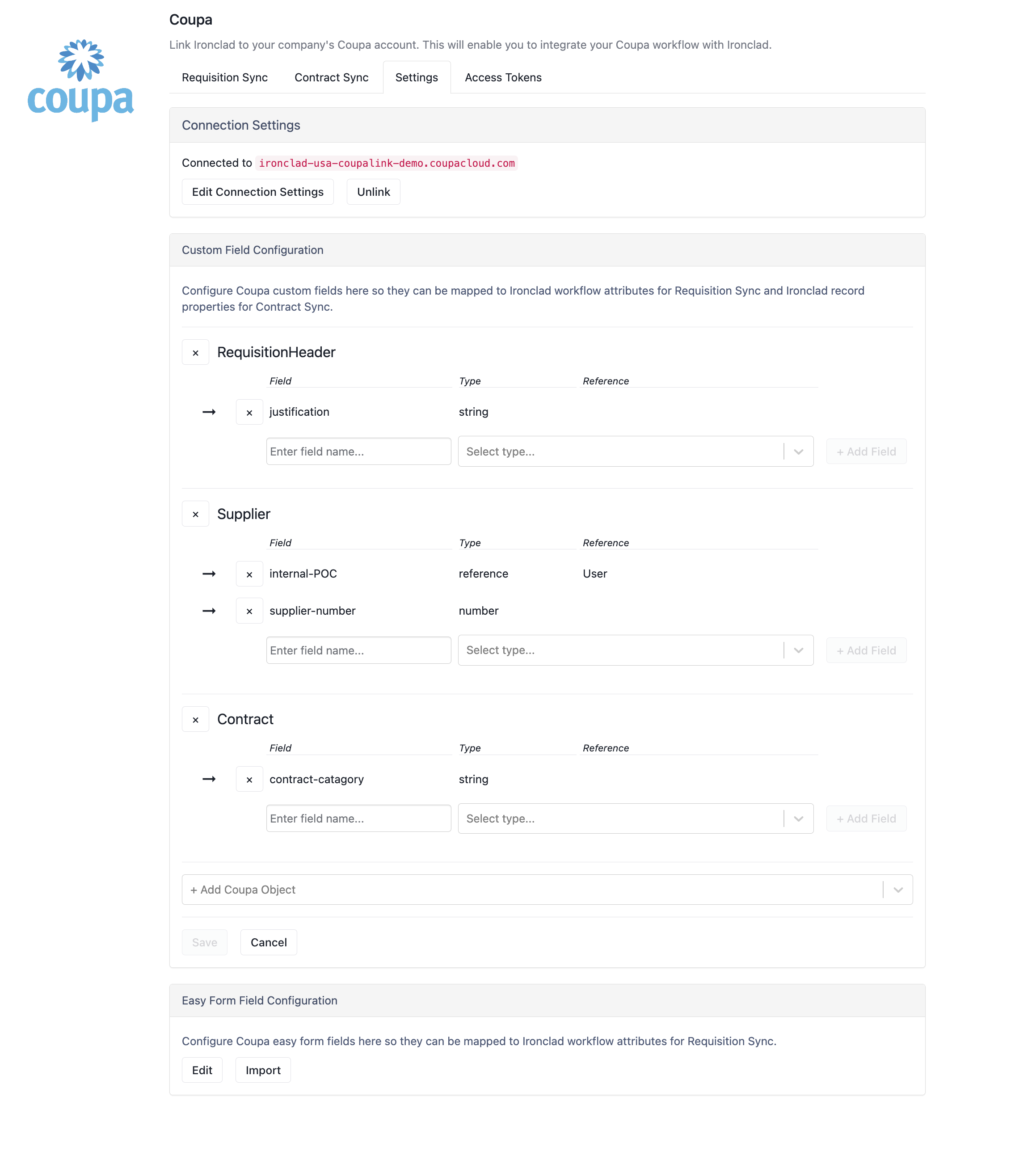 Use Custom Fields and Easy Forms in Coupa Integration Ironclad