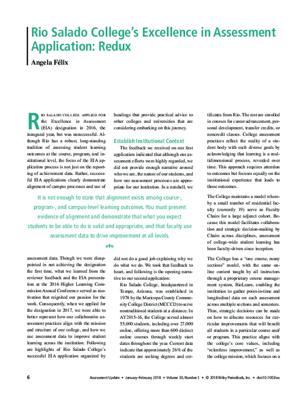 (PDF) Rio Salado College's Excellence in Assessment Application Redux