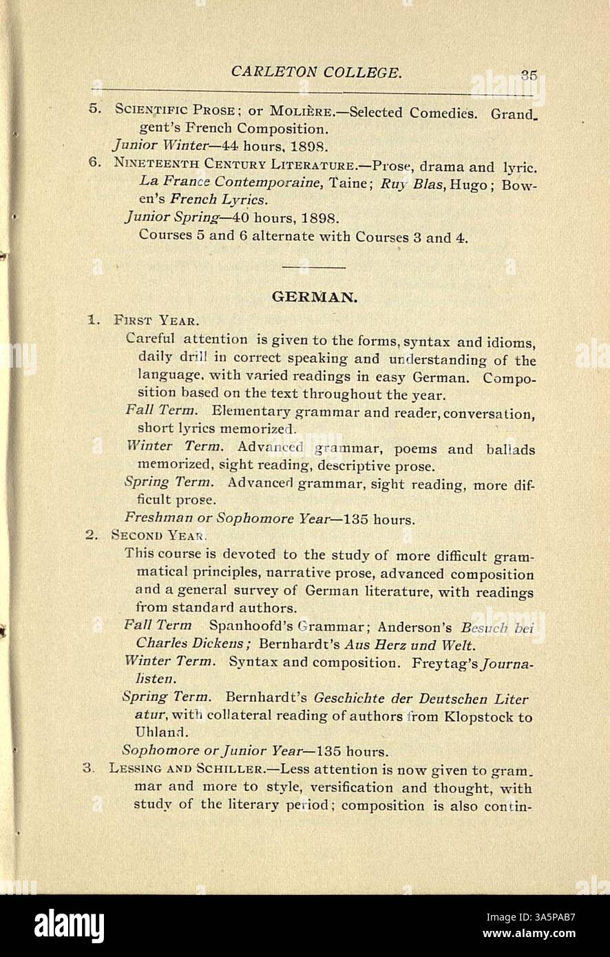 The 1898 1899 carleton college catalog outlines academic courses hires