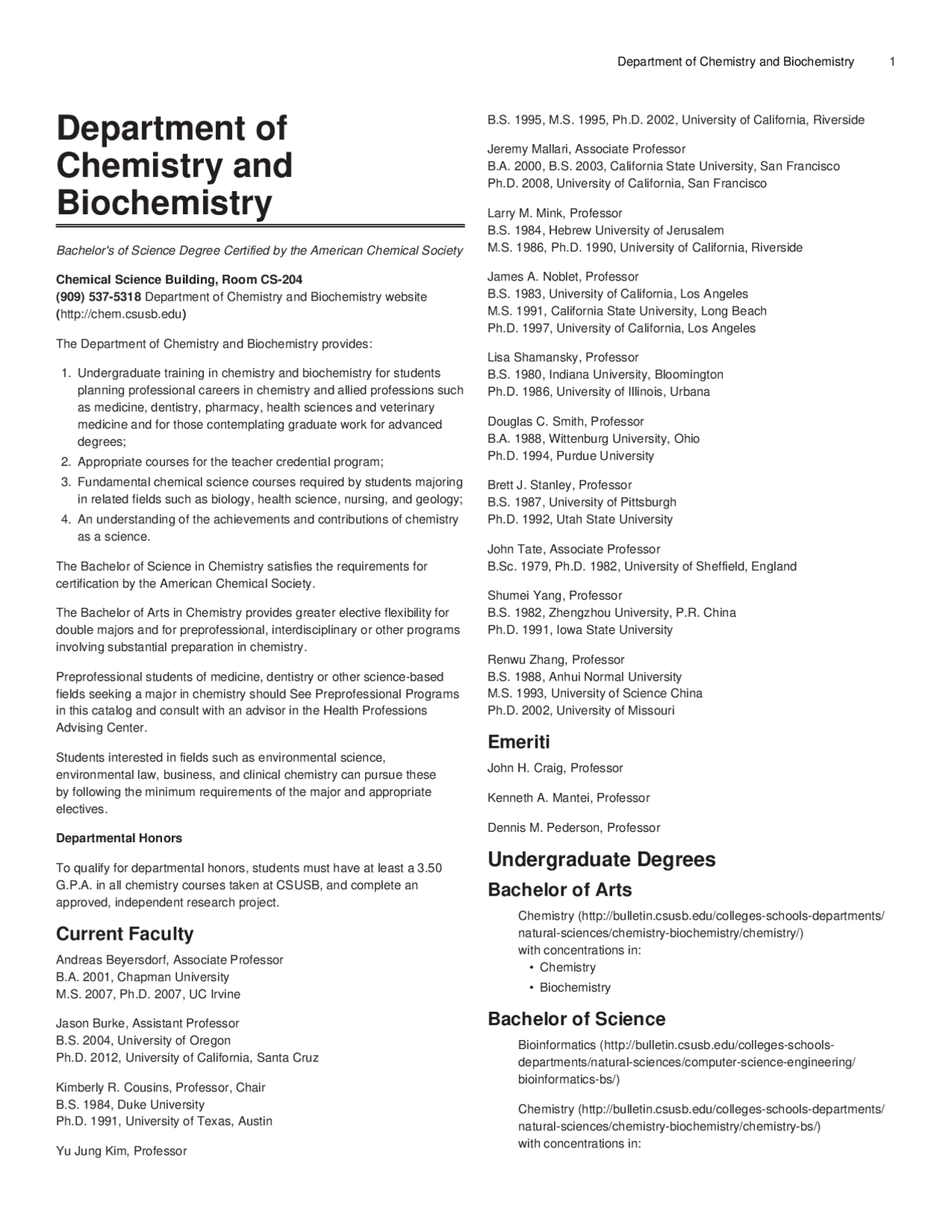 Chemistry & Biochemistry Courses at CSUSB Slides Biochemistry Docsity