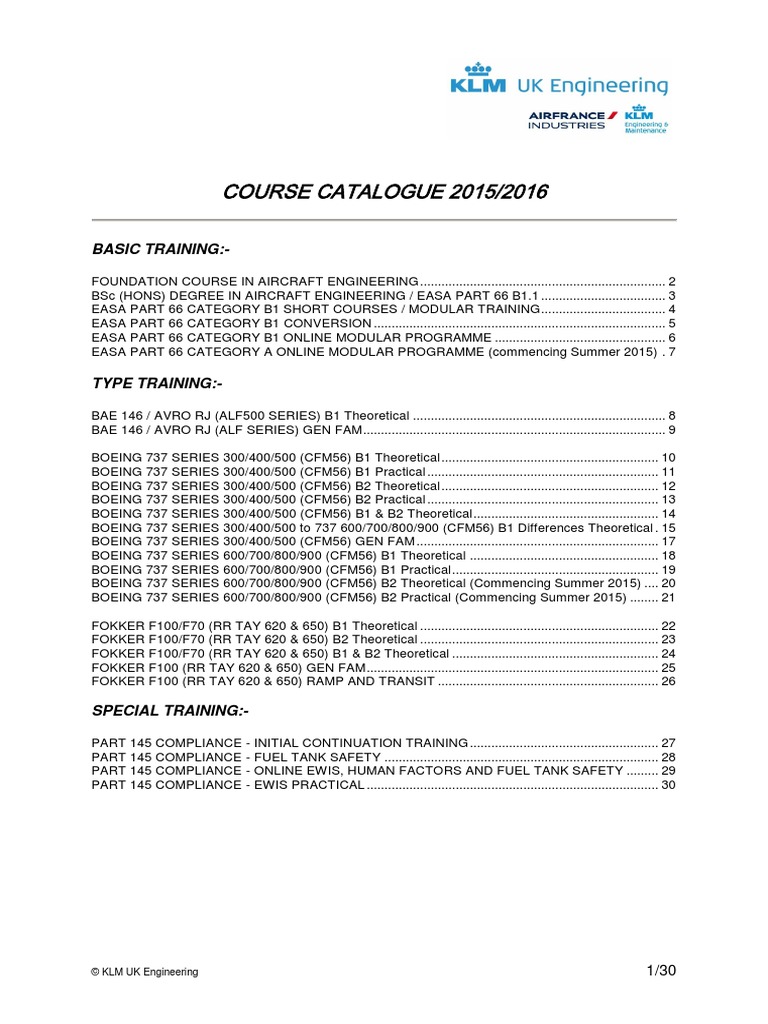COURSE CATALOGUE 2015/2016 Basic Training PDF Aeronautics Test