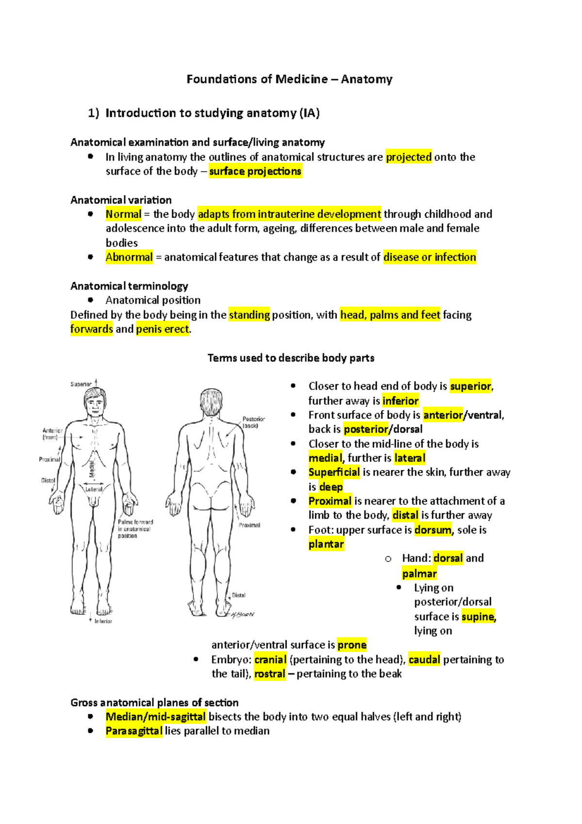FoM Anatomy notes Foundations of Medicine Anatomy 1) Introduction