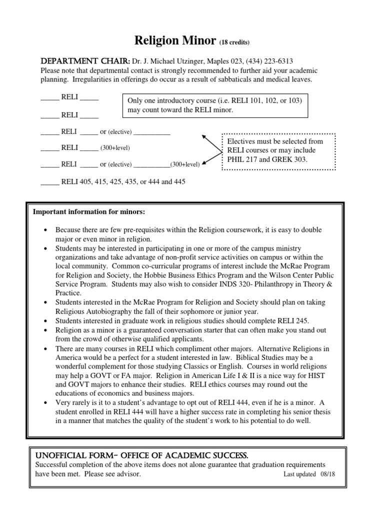 Religion Minor Important Information For Minors PDF Learning