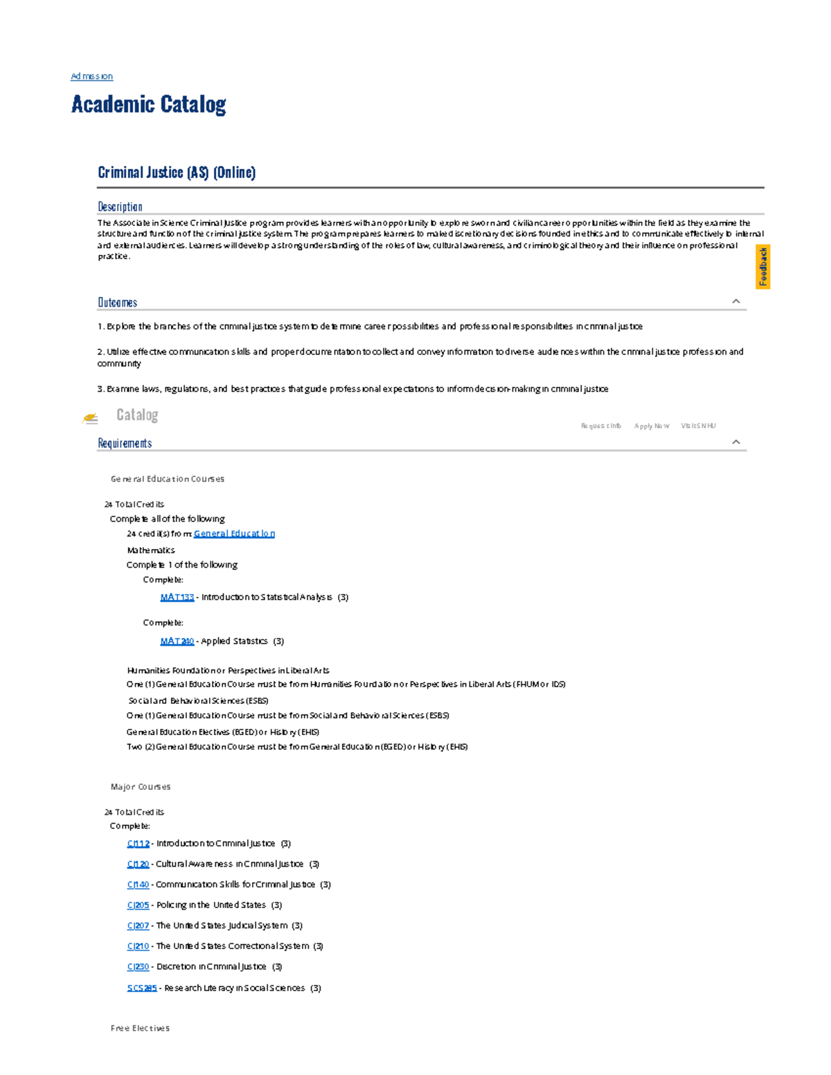 Criminal Justice (AS) Admission Academic Catalog Criminal Justice (AS