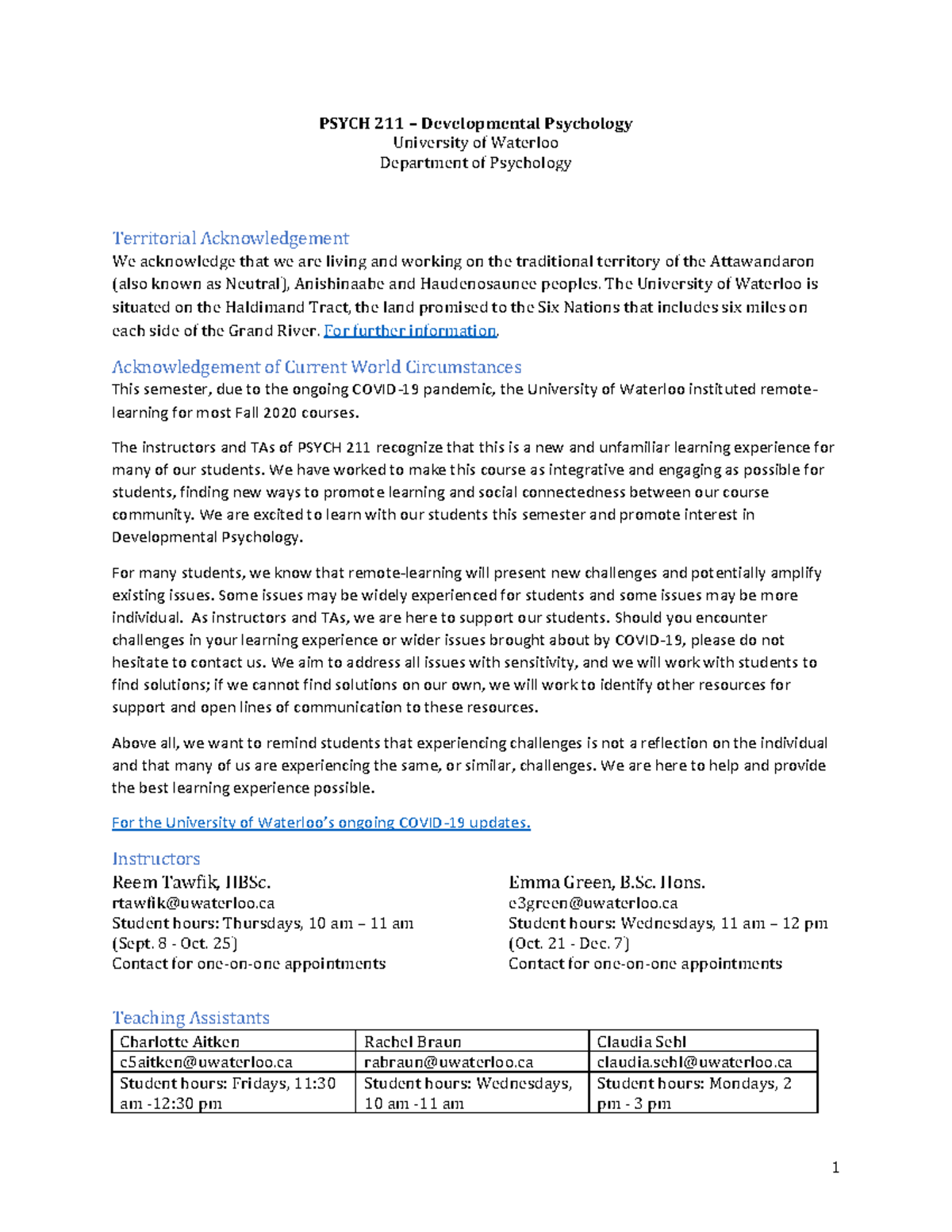 Psych 211 Course Outline PSYCH 211 Developmental Psychology