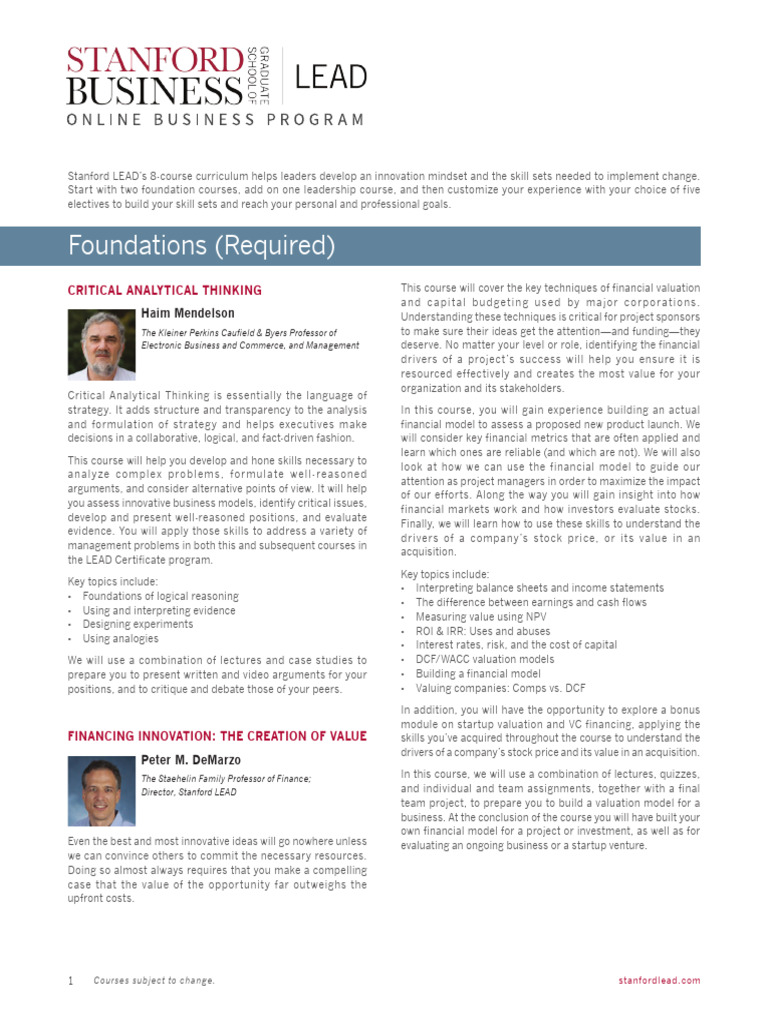 LEAD Course Catalog Stanford University PDF Discounted Cash Flow