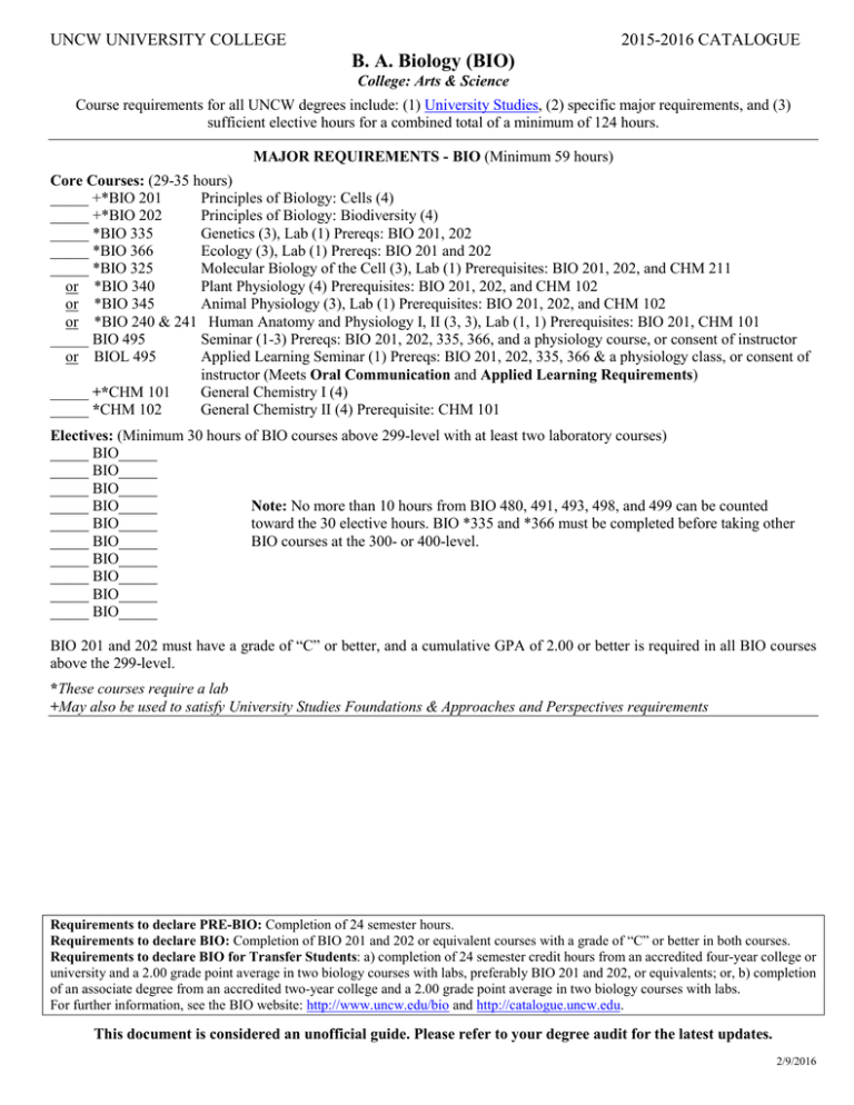 Course Catalog Uncw