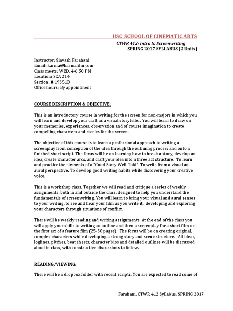 SPRING 2017 SYLLABUS (2 Units) USC School OF Cinematic Arts PDF