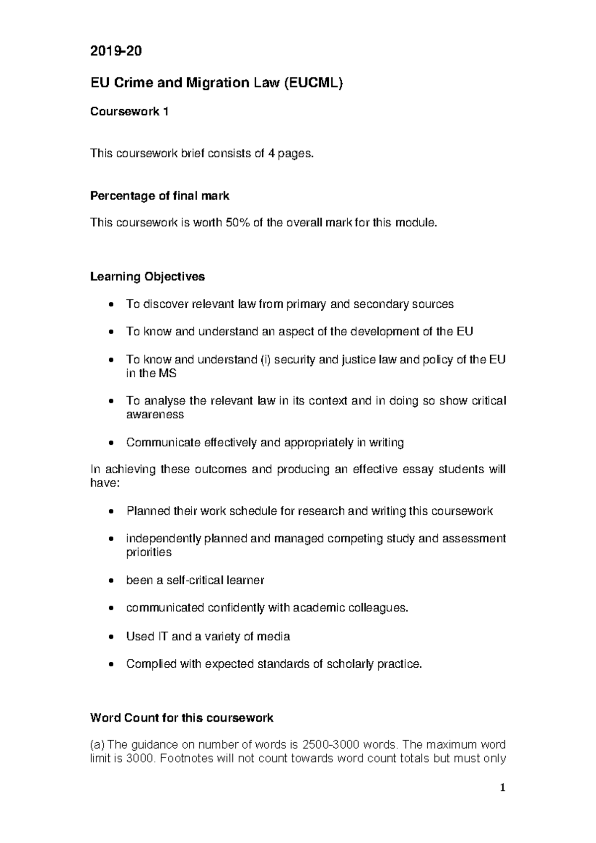 Coursework 2019202 Assignment 2019 EU Crime and Migration Law