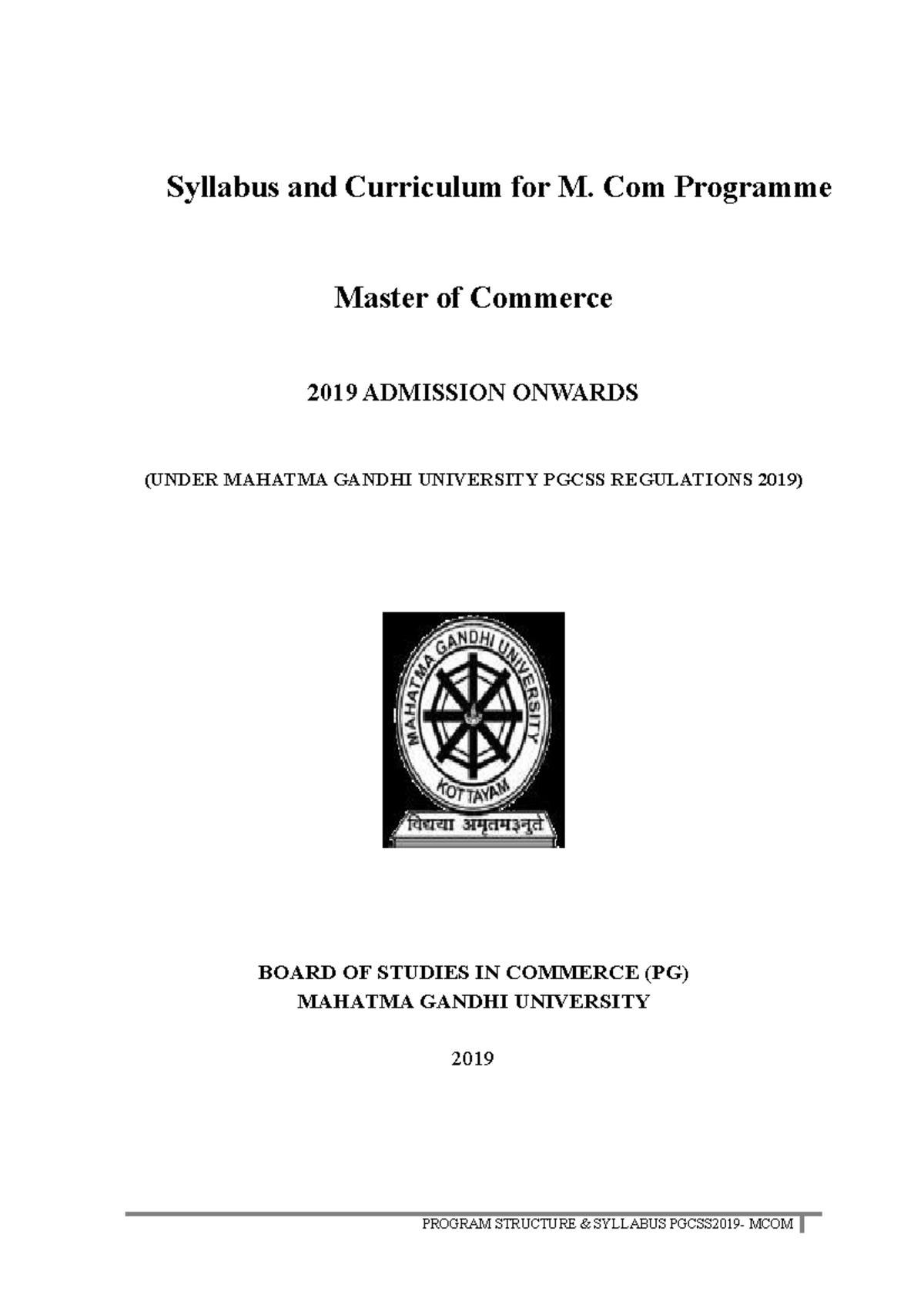 M Com Syllabus May 2019 nil PROGRAM STRUCTURE & SYLLABUS PGCSS2019