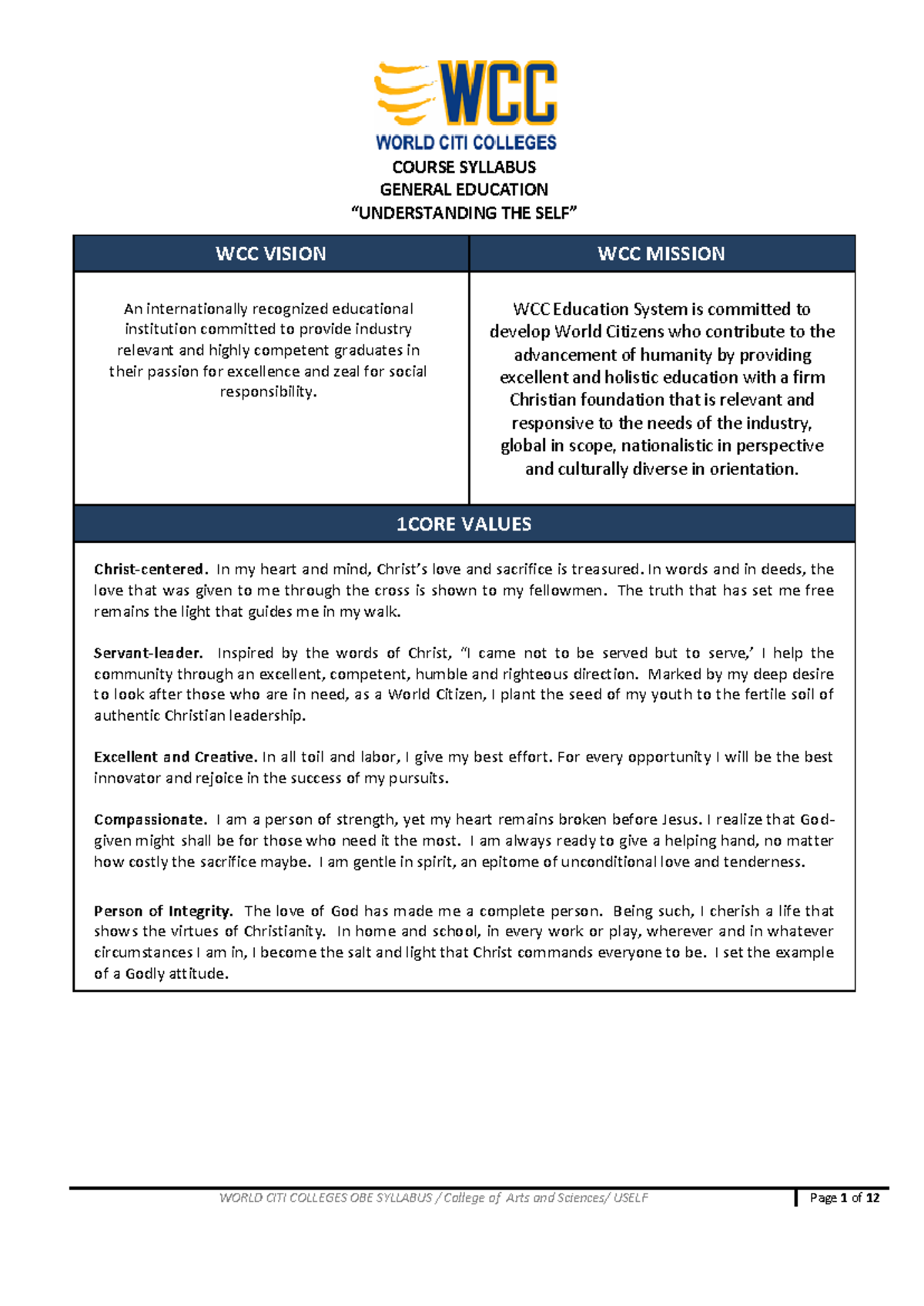 UselfUnderstandingtheSelf COURSE SYLLABUS GENERAL EDUCATION