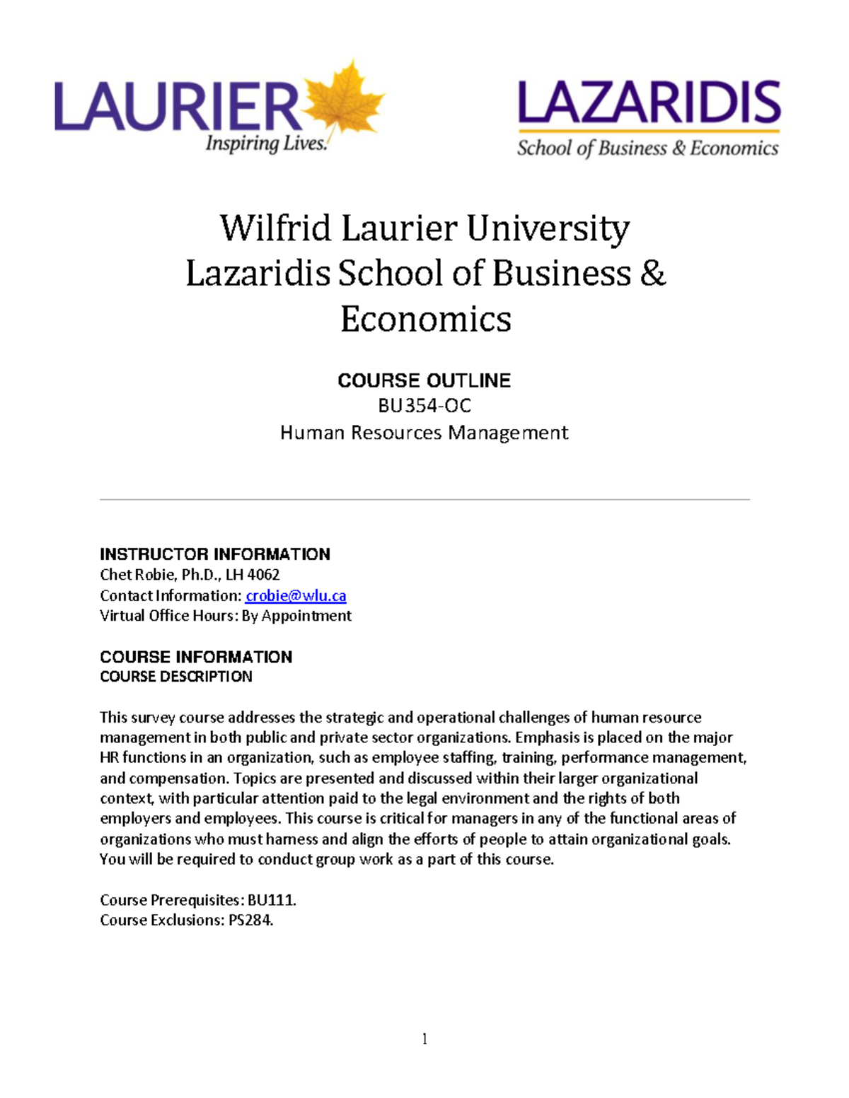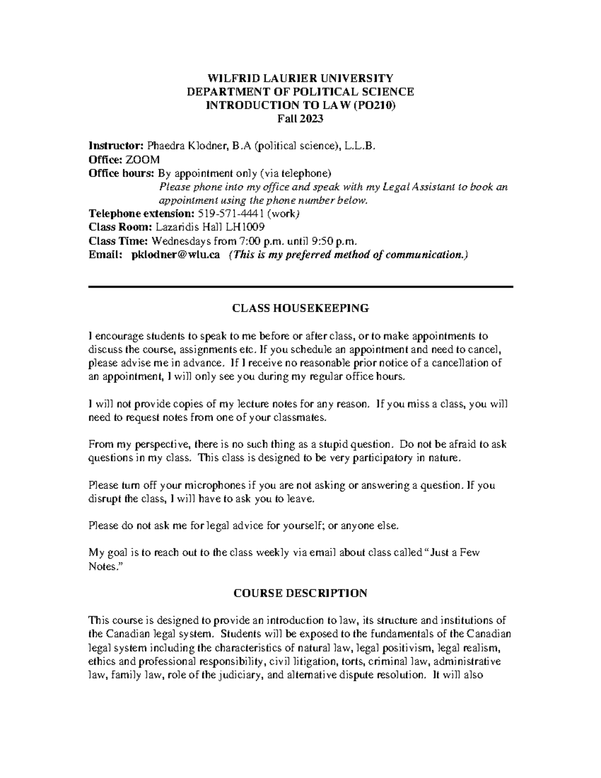 WLU Course Outline Fall 2023 WILFRID LAURIER UNIVERSITY DEPARTMENT OF