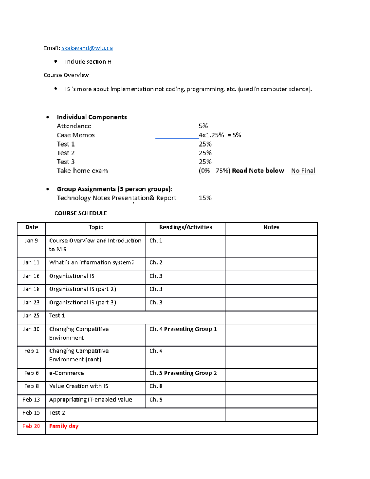 Notes v2 Email skakavandwlu Include section H Course Overview IS is