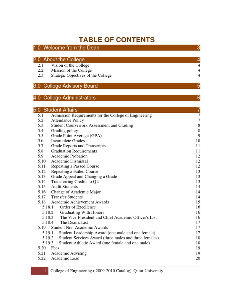 College Catalog 20092010 Updated Qatar University PDF Course
